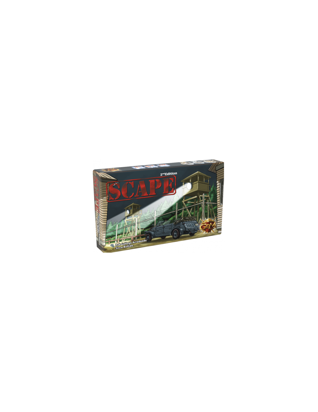 SCAPE Segunda Edición de GDM Games es un trepidante juego de mesa de roles ocultos ambientado en la Segunda Guerra Mundial, inspirado en la película La gran evasión. Diseñado por Pak Gallego e ilustrado por Siscu Bellido, esta edición renovada mejora componentes, añade cartas y ofrece una experiencia más intensa para grupos grande