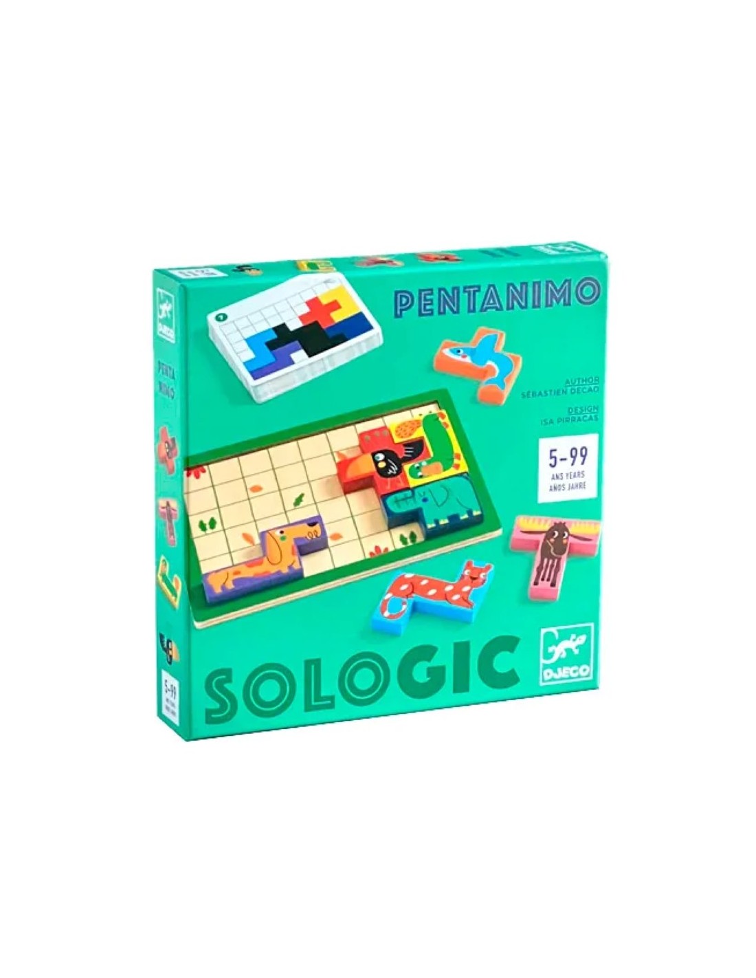 Pentamino es un desafiante juego de lógica cuyo objetivo es conseguir que todos los animales convivan en el mismo tablero. El juego tiene 30 cartas de retos que te darán una posición inicial de varias piezas y a partir de ahí deberás completar el resto del tablero. La dificultad de los retos irá aumentando progresivamente.