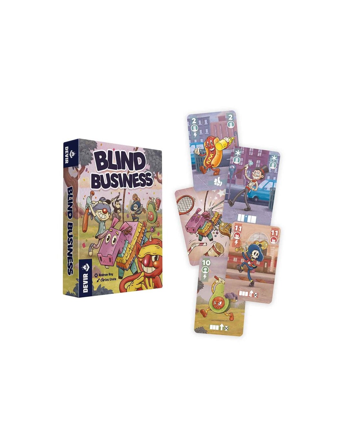 Diseñado por Andrew Roy e ilustrado por Carlos Ureta, Blind Business es un juego de cartas en el que pueden participar de 2 a 5 jugadores que ofrece partidas de entre 15 y 30 minutos. Para ganar deberás hacer tratos a ciegas con el resto de los jugadores y sumar la mayor cantidad de puntos posibles.