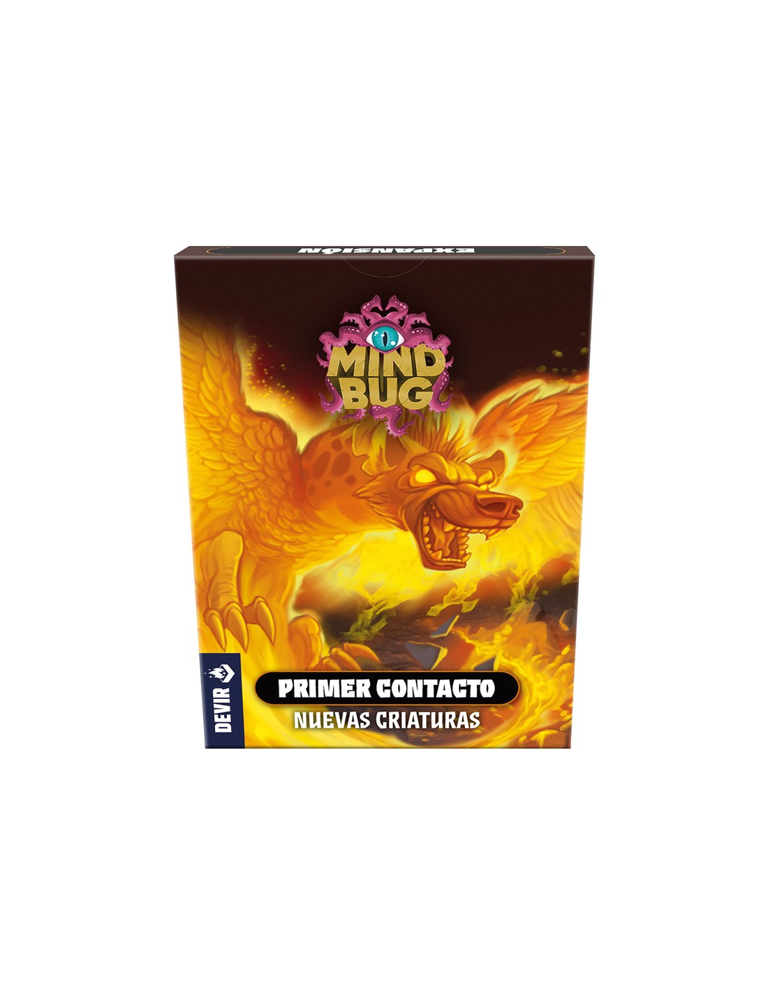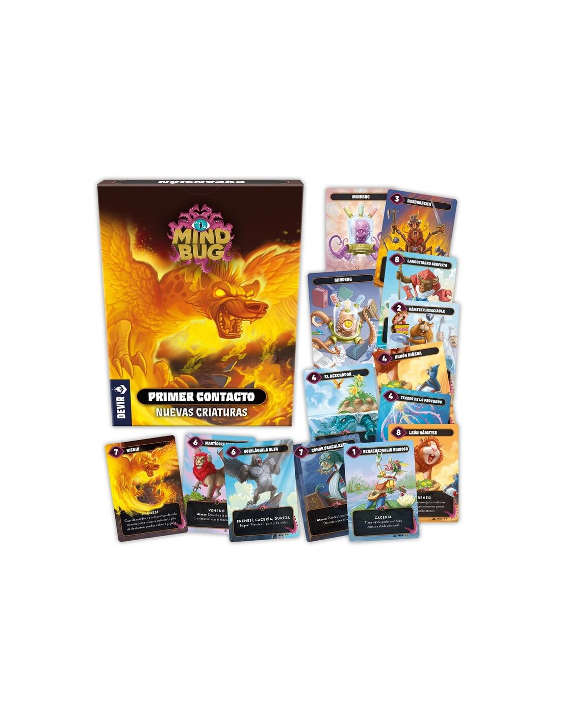Mindbug Primer Contacto - Nuevas Creaciones es la primera expansión para el juego Mindbug. Añade nuevas criaturas con lo cual la variedad de cada partida aumenta así como la estrategia. Con esta expansión los enfrentamientos serán aún más épicos.