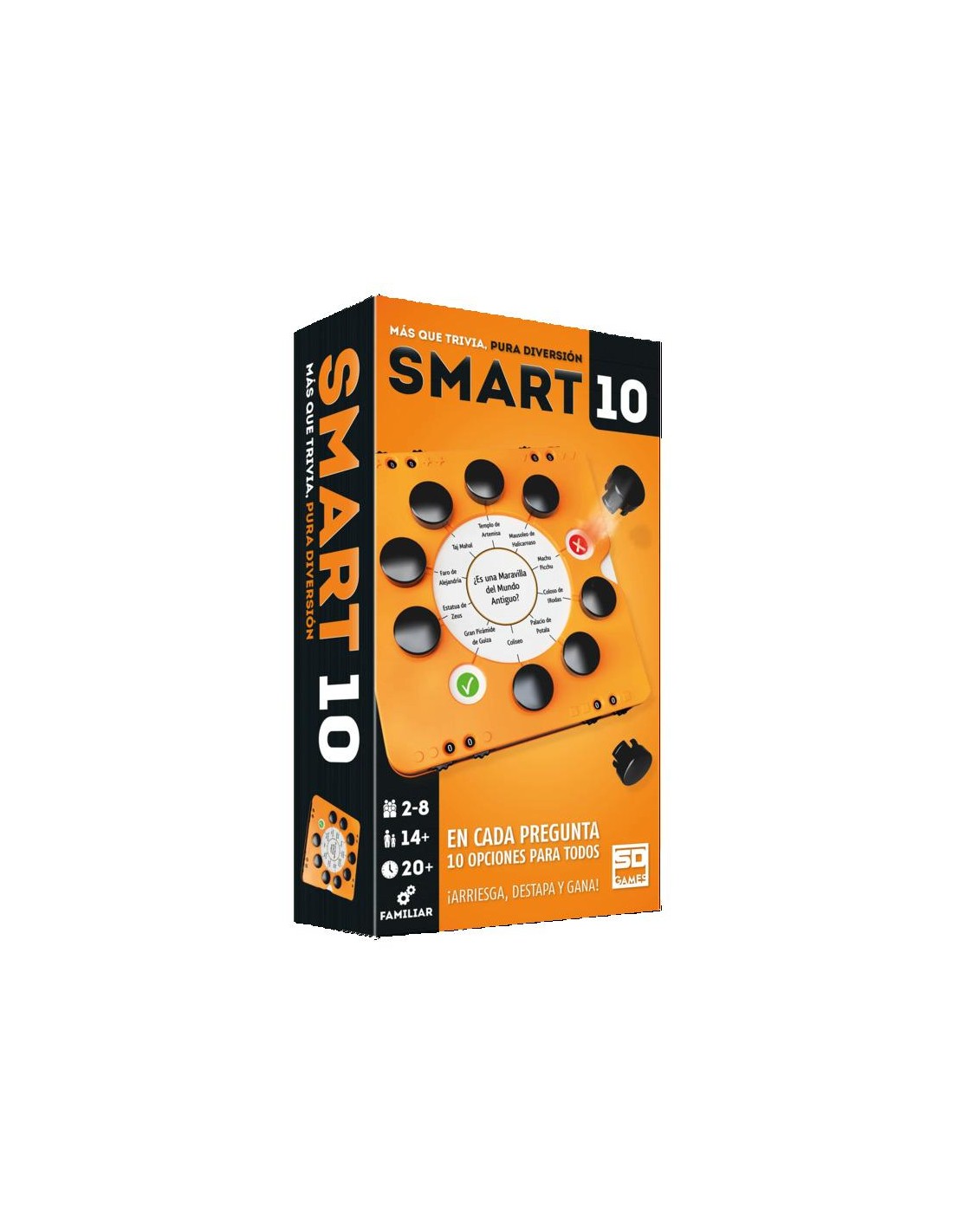 Smart10 es un juego de preguntas donde los jugadores no deberán esperar demasiado su turno. Las preguntas ofrecen 10 posibles respuestas y todos los jugadores tendrán la oportunidad de contestar en cada una de las preguntas. Si tu respuesta es correcta, recibirás un marcador. Pero, ¿debes contestar o pasar? Recuerda que si no aseguras tus marcadores a tiempo, podrás terminar perdiéndolos todos.