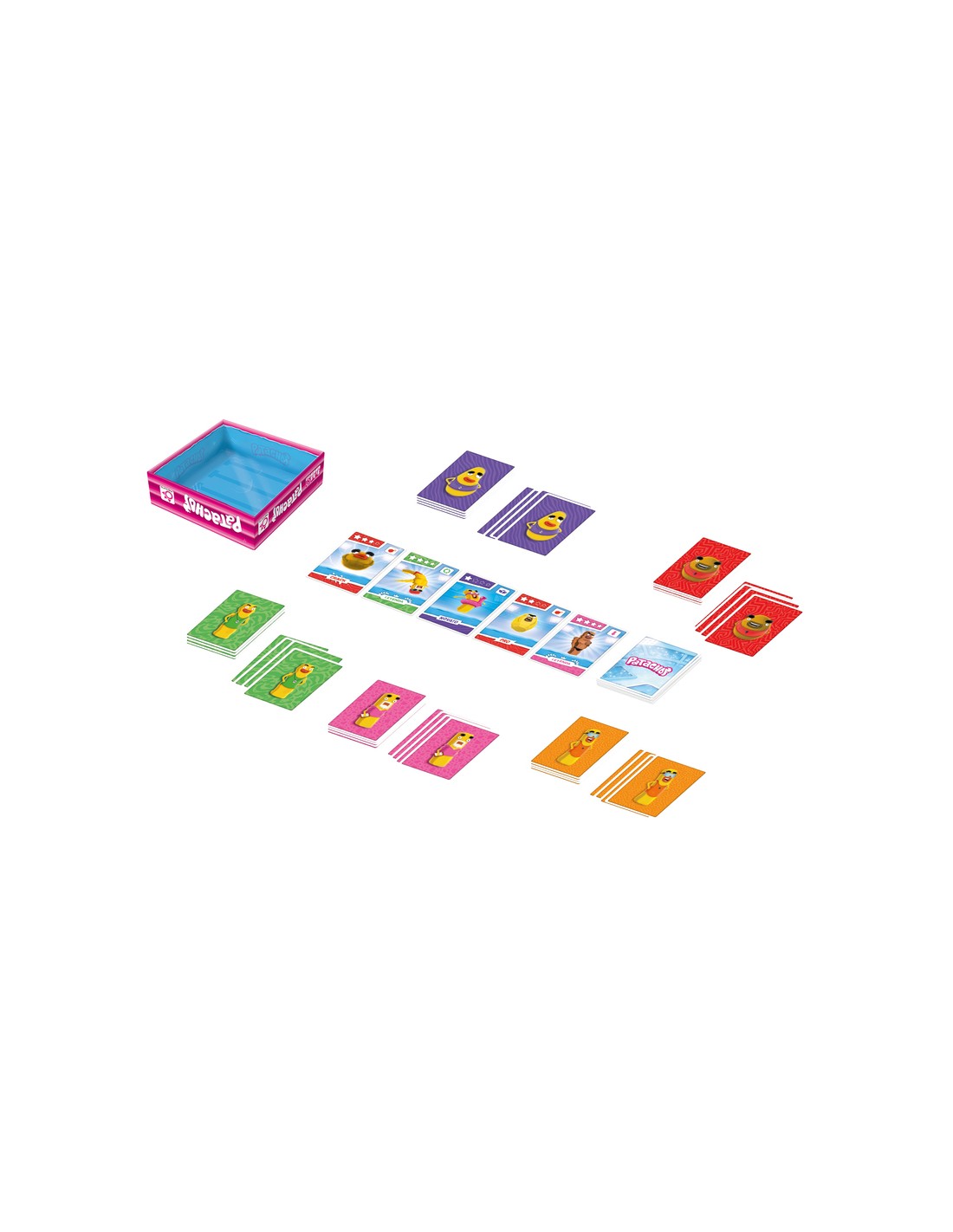 Patachof es un super original juego de cartas de 2 a 5 jugadores. Un juego que no te va a dejar indiferente. El juego se desarrolla en dos fases: una primera fase de pujas por el que los jugadores pujarán con las cartas de entrenador por las mejores patatas que darán más puntos si ejecutan de forma correcta su salto. En la segunda fase los jugadores deberán demostrar su habilidad lanzando sus cartas de patata a la piscina (la misma caja del juego) de varias maneras posibles.