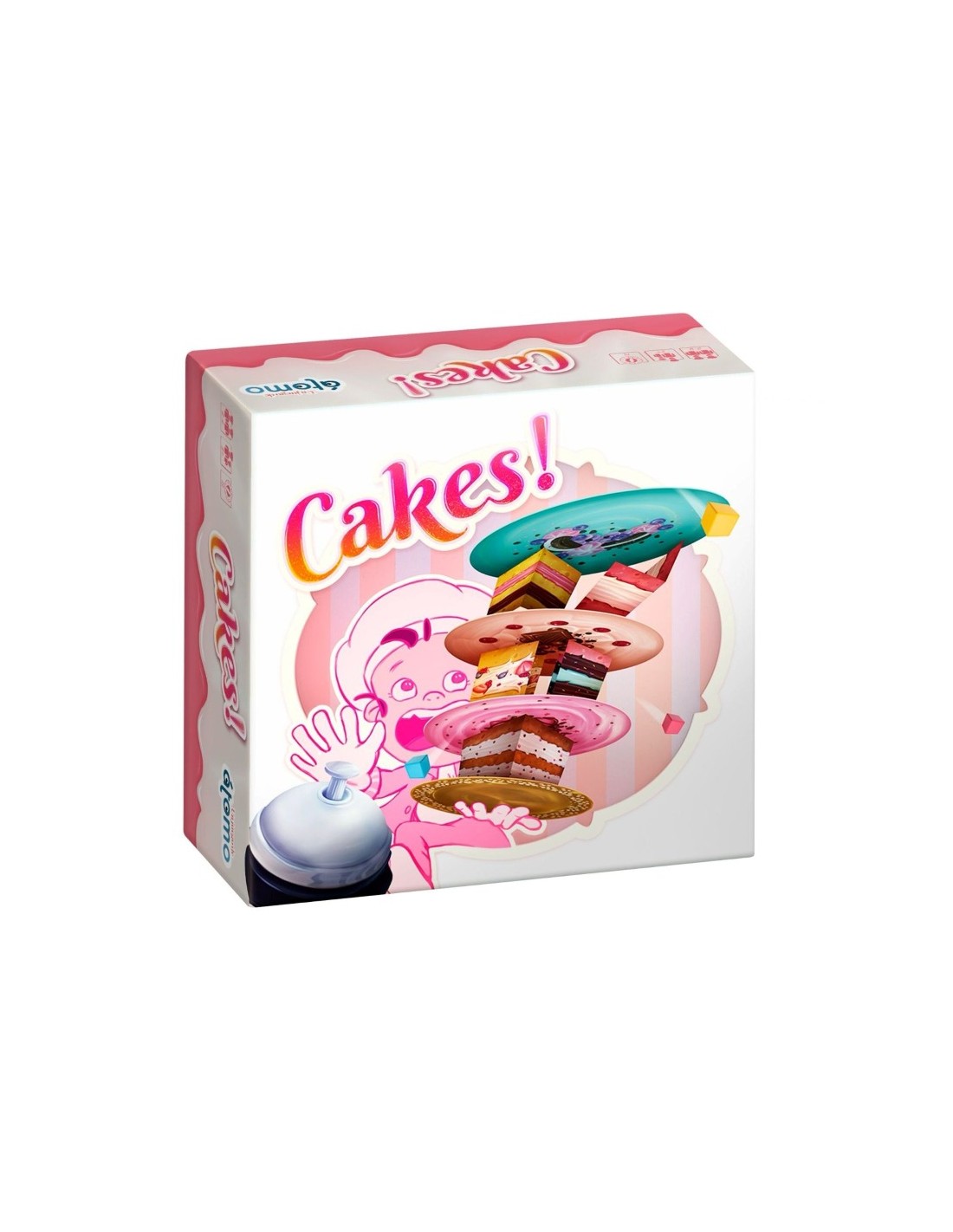 Cakes! es un juego de habilidad y rapidez para toda la familia. Los niños pueden sostener la tarta sobre la mesa mientras que los adultos lo harán con la mano.