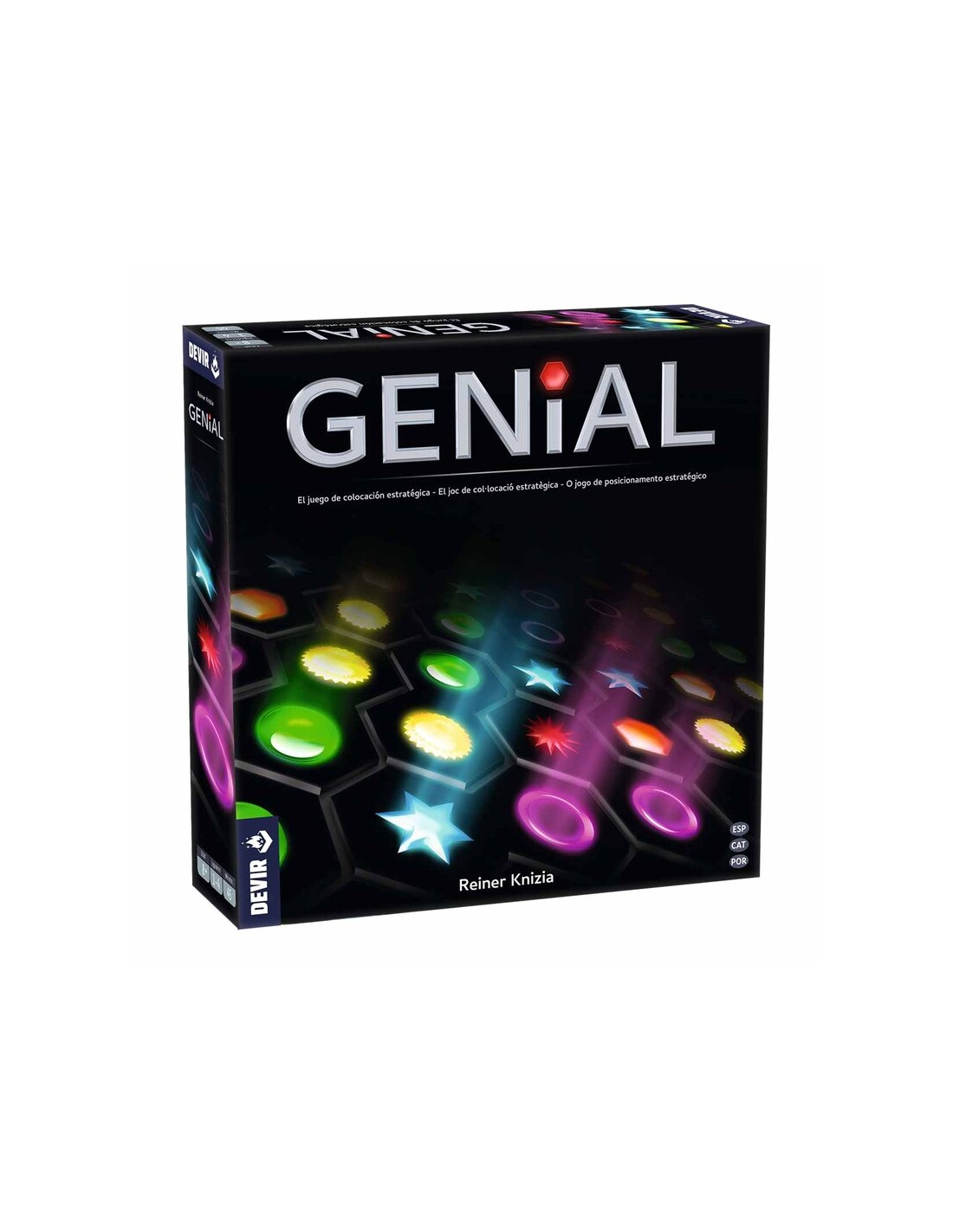 Genial es un juego abstracto del renombrado y prolífico autor alemán Reiner Knizia. Por turnos tendremos que ir colocando fichas de colores en el tablero intentando unirlas a otras fichas con los mismos colores con el fin de conseguir los máximos puntos posibles. Se trata de un sencillo y entretenido juego familiar de corta duración pero con mucha estrategia.