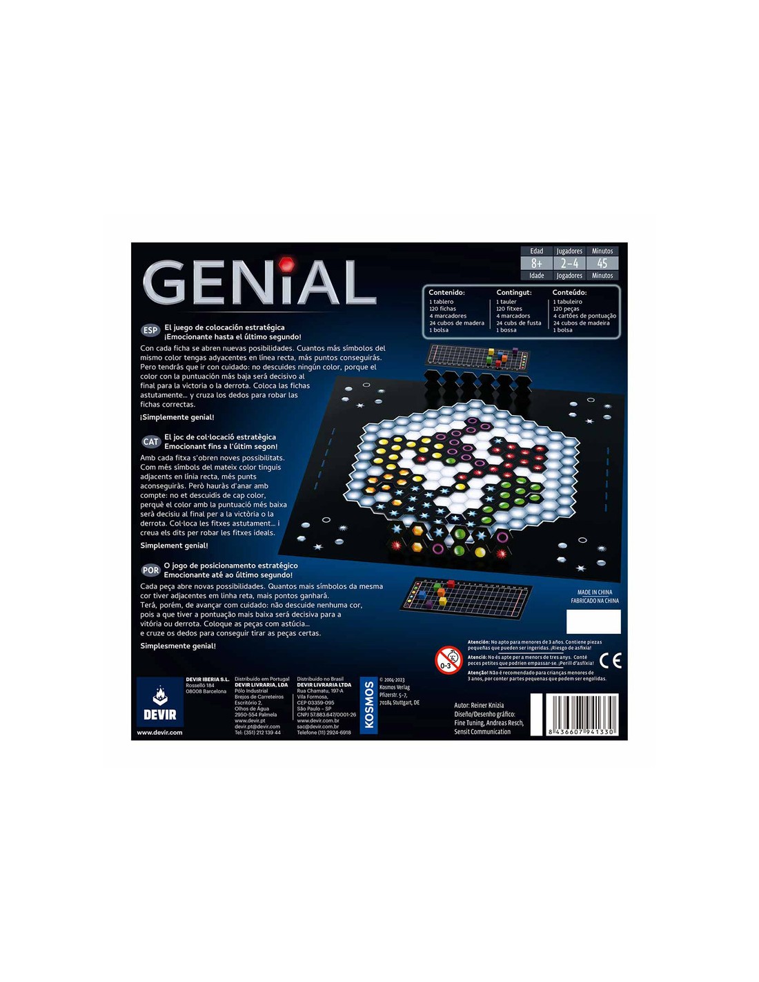 Un juego de tablero imaginativo, de reglas sencillas y fácil aprendizaje. Un increíble desafío intelectual que es capaz de enganchar a todos los públicos. Este ingenioso juego creado por el renombrado diseñador Reiner Knizia, ha sido nominado al prestigioso premio alemán Juego del Año 2004. Se trata de uno de los pocos juegos de tablero que ofrece la posibilidad de jugar en solitario. ¡Genialmente simple y simplemente genial!