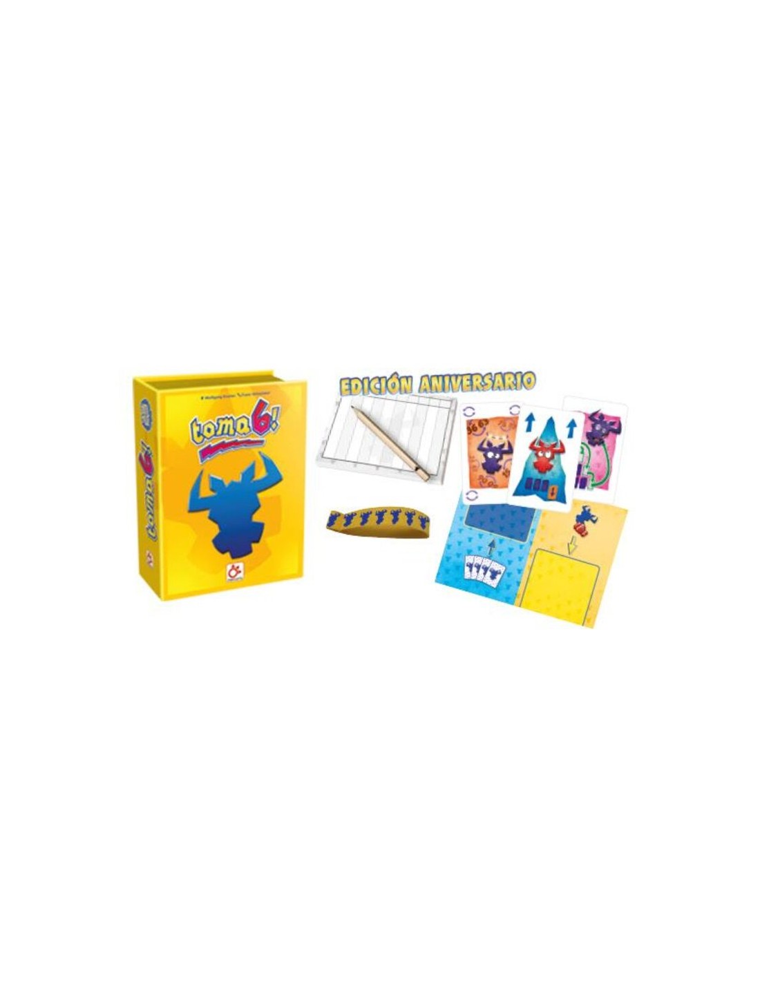 Toma 6! 30 Aniversario, como bien dice el nombre, es una vesión especial que viene en una preciosa caja tipo libro, Además del juego base, encontraremos una variante cooperativa "Doma al Búfalo" y 4 cartas especiales inventadas por los fans del juego, que añaden aún si caibe mayor tensión.