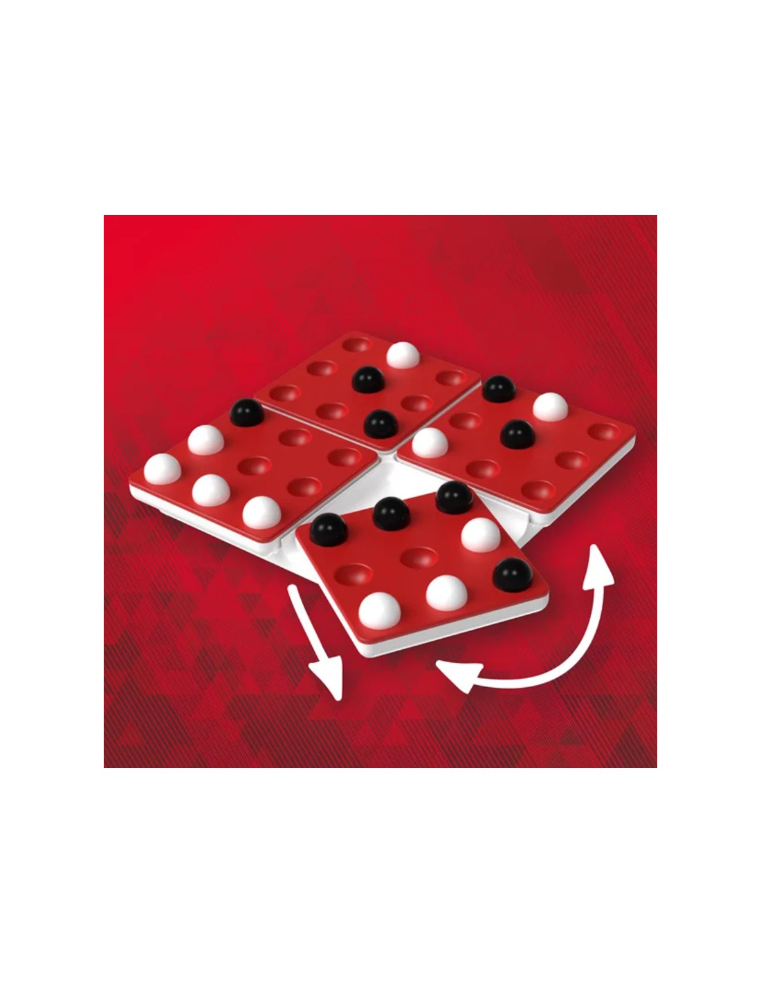 Pero en tu turno no solo tendrás que colocar una canica en uno de los espacios disponibles: ¡también tendrás que girar uno de los cuatro cuadrados! Todo un reto tanto para jugadores principiantes como para expertos. Este juego ha sido creado por el sueco Tomas Flodén, galardonado con muchos premios y con un indudable éxito en ventas.