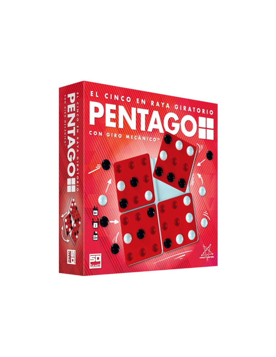 PENTAGO™ es un juego de estrategia rápido y divertido que mezcla sencillez y sofisticación. El objetivo es conseguir crear una fila con cinco canicas de tu color en cualquier punto del tablero.