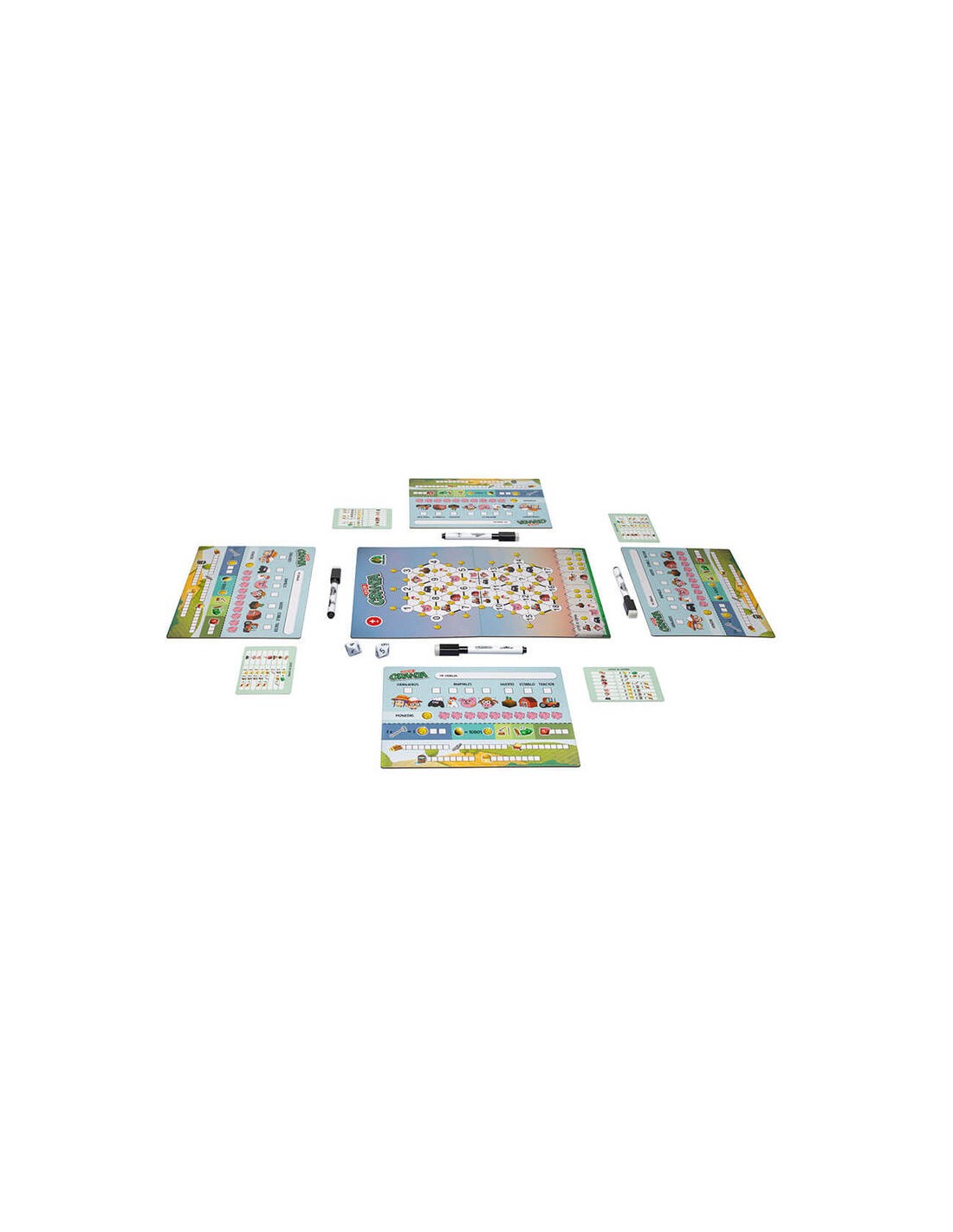 Operación Granja es un roll and write muy divertido y adictivo en el que los jugadores combinan dos piedras misteriosas (dados de diez caras) para obtener dinero o recursos para construir su granja. Cuenta con dos modos de juego: un “modo fácil” en el que los jugadores realizan sumas y restas para obtener monedas y un “modo avanzado” donde los jugadores realizan multiplicaciones con los dados para obtener el dinero y los recursos necesarios para comprar los diferentes elementos de la granja.