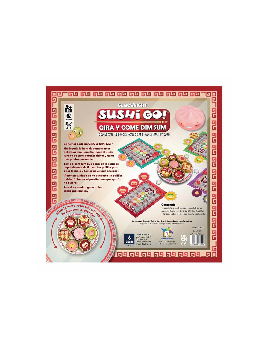 ¡Bienvenidos al restaurante, comensales! Tomad asiento alrededor de esta magnífica mesa giratoria y preparaos para probar los mejores bocados de la cocina oriental. Sushi Go! Gira y come dim sum es un juego completamente independiente del universo Sushi Go, que comparte estética y algunas mecánicas con el clásico juego de cartas. No hace falta tener, conocer o haber probado el juego original para disfrutar de este título.