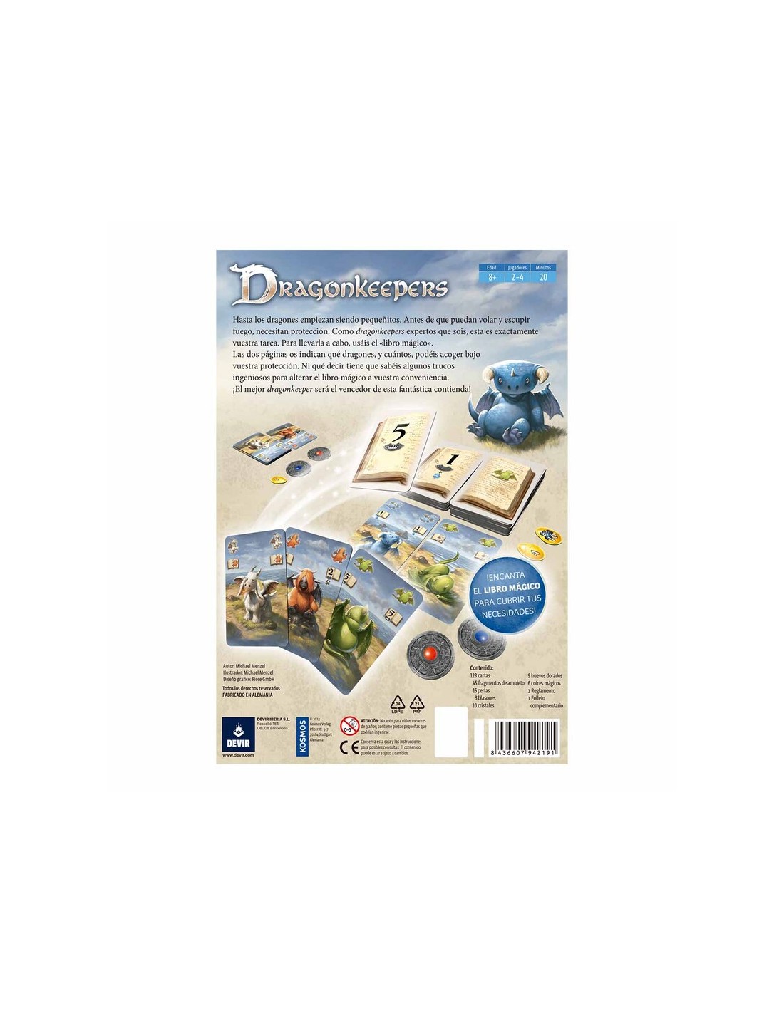 Diseñado e ilustrado por Michael Menzel (autor de juegos míticos como Leyendas de Andor o Robin Hood), Dragonkeepers se puede disfrutar en pareja o en grupos de hasta 4 jugadores, a partir de 8 años, en partidas de unos 20 minutos. El objetivo consiste en conseguir el mayor número posible de puntos al final de la partida. Estos puntos se consiguen jugando cartas de dragón de nuestra mano, siguiendo las indicaciones de un libro mágico.