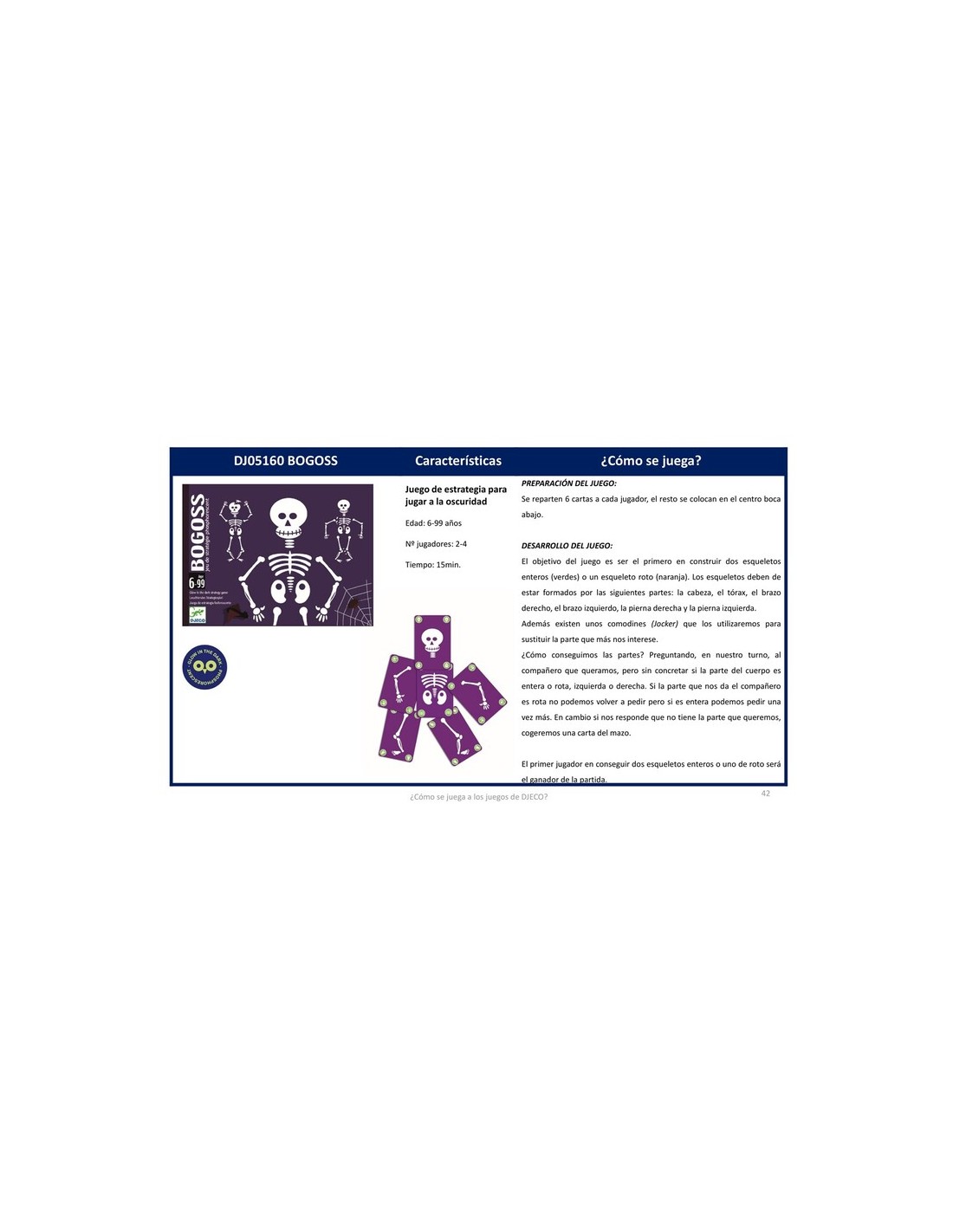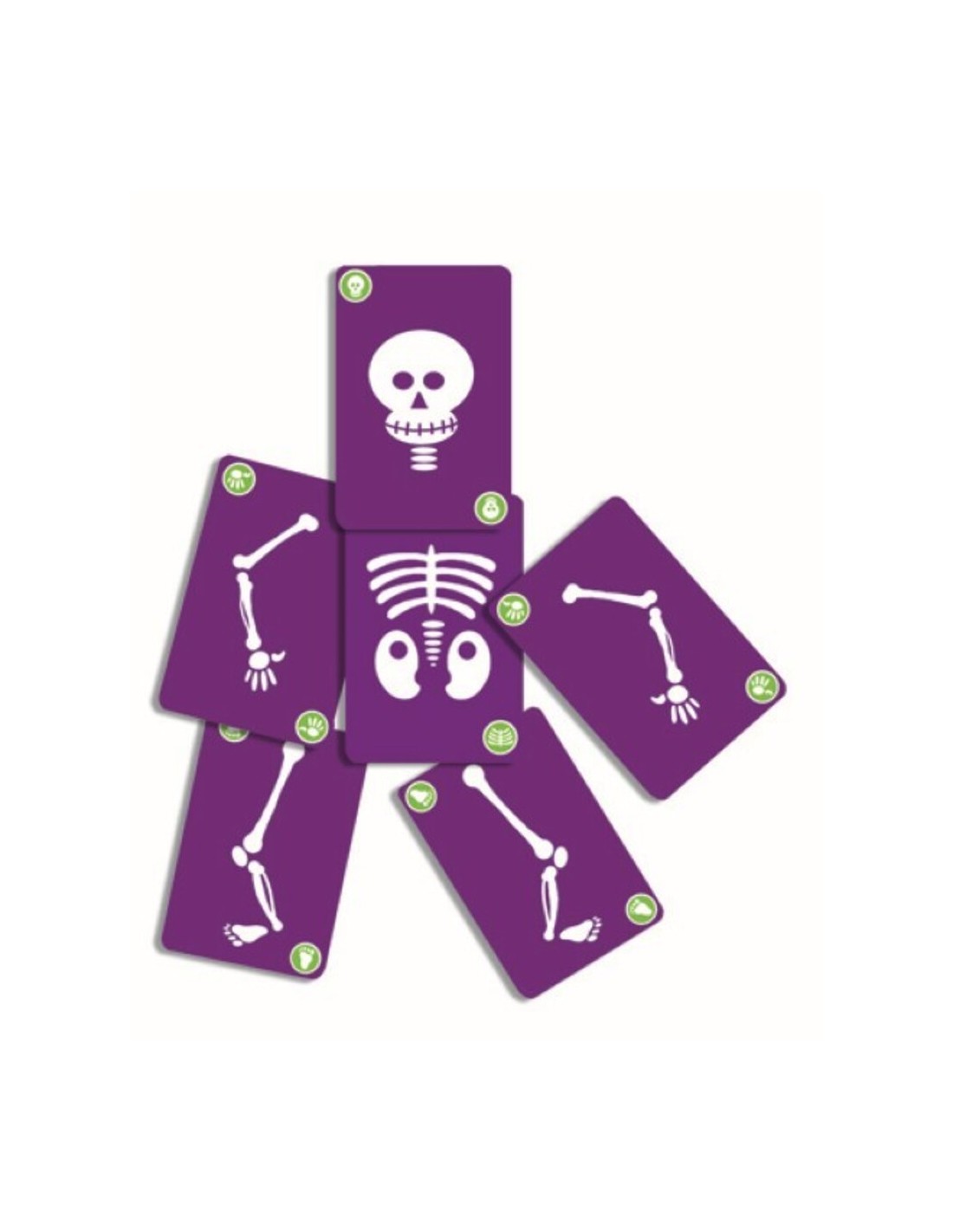 -Un juego de estrategia fosforescente, en el que hay que formar esqueletos con las cartas. ¡Como en un juego de 7 familias, los jugadores piden cartas a sus oponentes, pero atención, porque estos pueden entregarles huesos enteros o rotos!