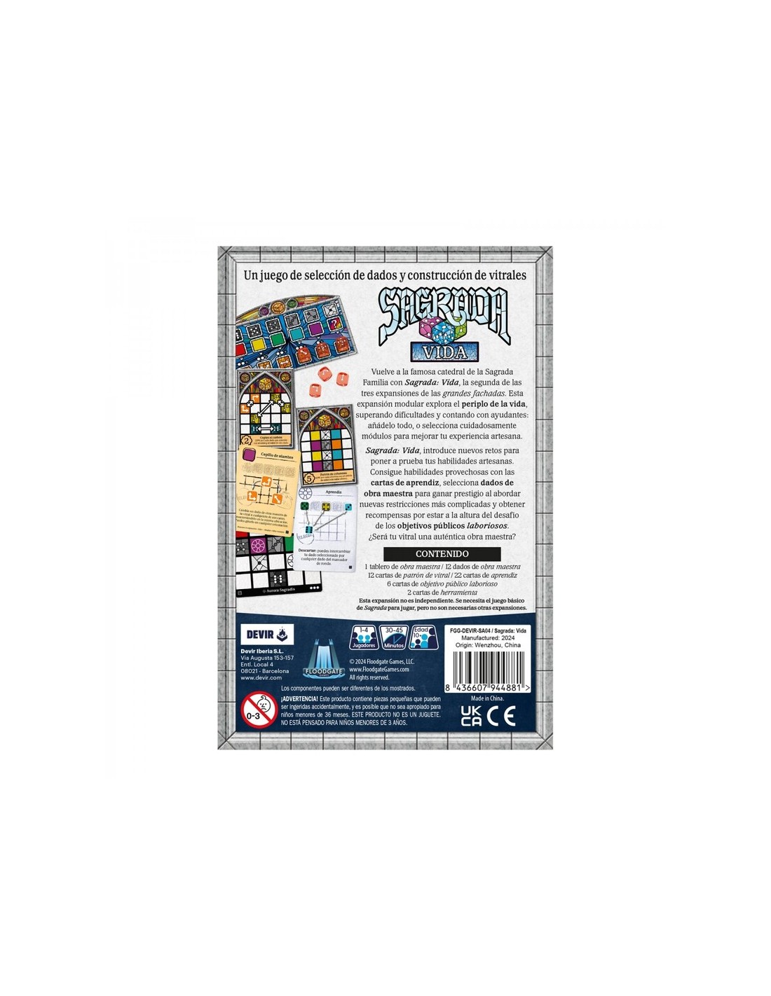 "Sagrada Vida" es la segunda expansión del aclamado juego de mesa "Sagrada", publicado por Devir. Diseñada para jugadores que buscan profundizar su experiencia creativa, esta expansión introduce nuevas estrategias y diseños. con módulos y elementos que se pueden combinar de diferentes formas, aumentando la rejugabilidad y la personalización.