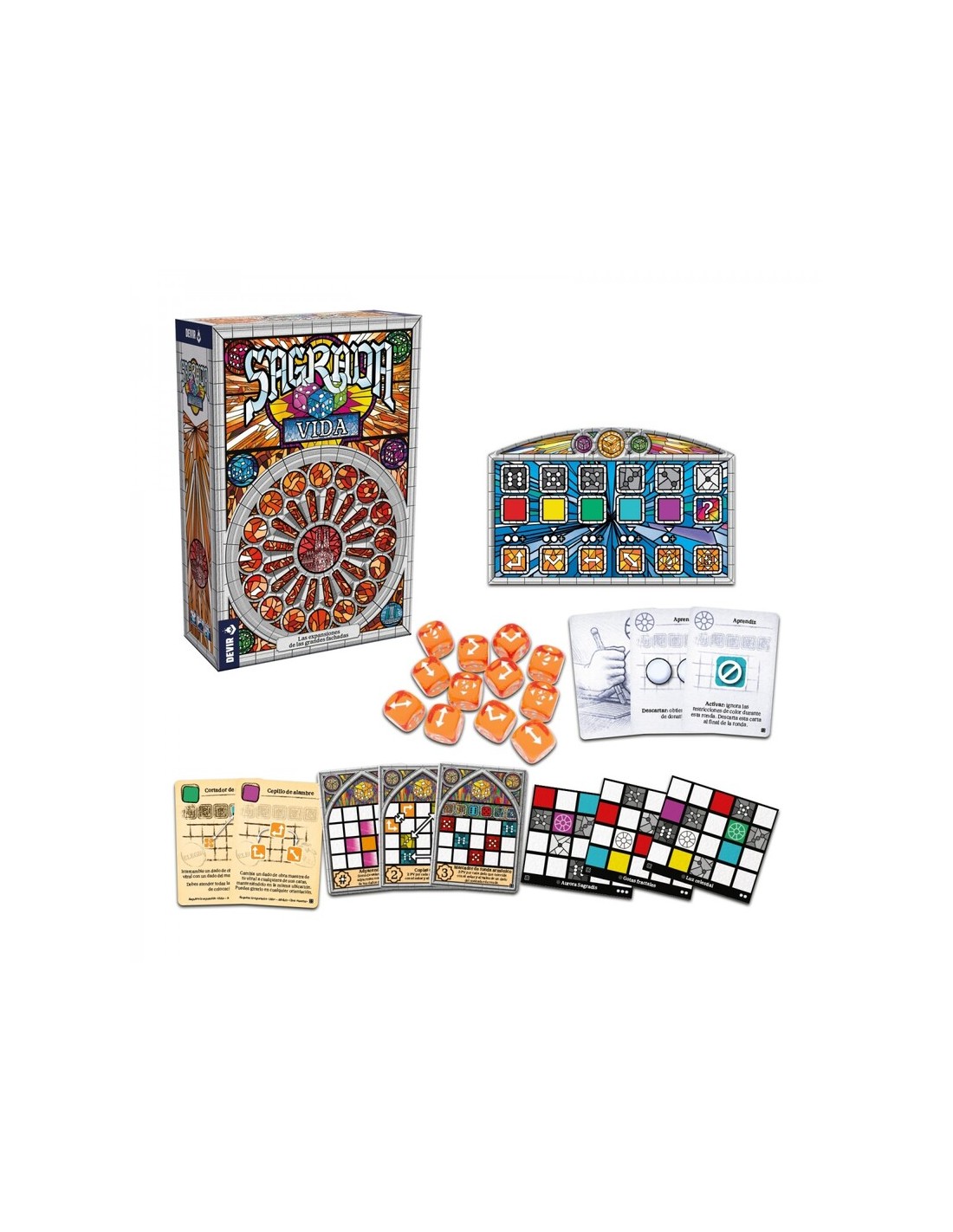 Sagrada: Vida presenta nuevos desafíos para poner a prueba tus habilidades artesanales. Consigue habilidades útiles con las cartas de aprendiz, tira dados de maestría para ganar prestigio al enfrentarte a nuevas y complicadas restricciones y recoge las recompensas por alcanzar los arduos objetivos públicos. ¿Será tu vidriera una auténtica obra maestra?