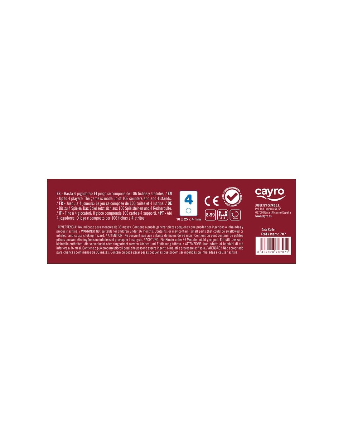 Tamaño ficha: 1,8 x 2,5 x 0,4 cm