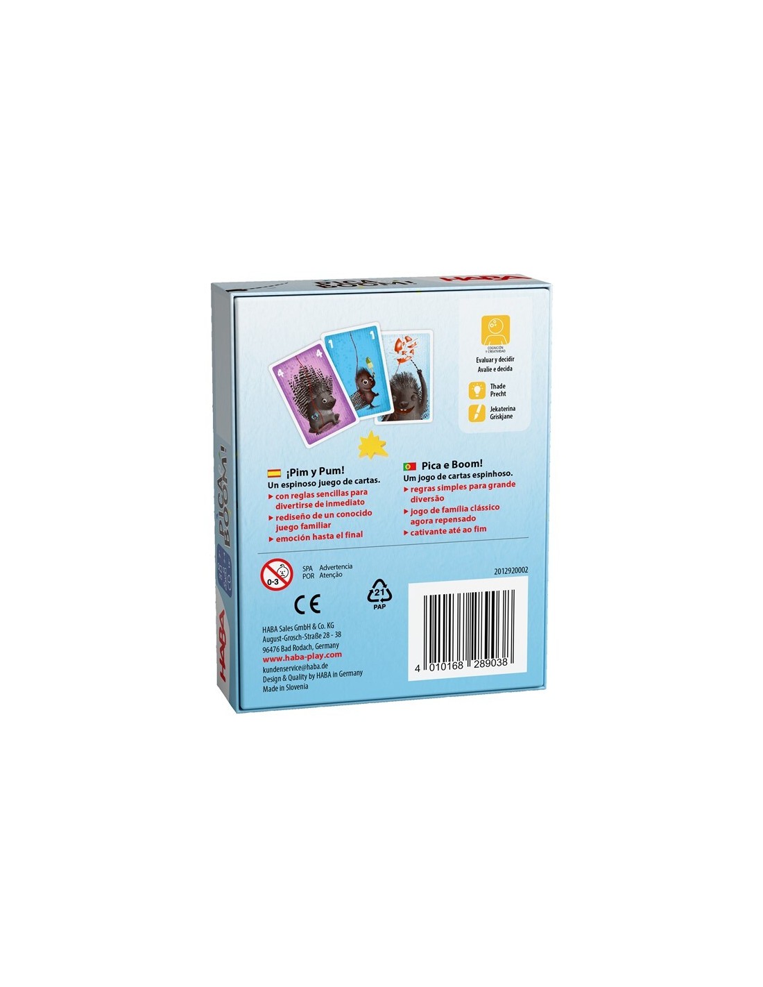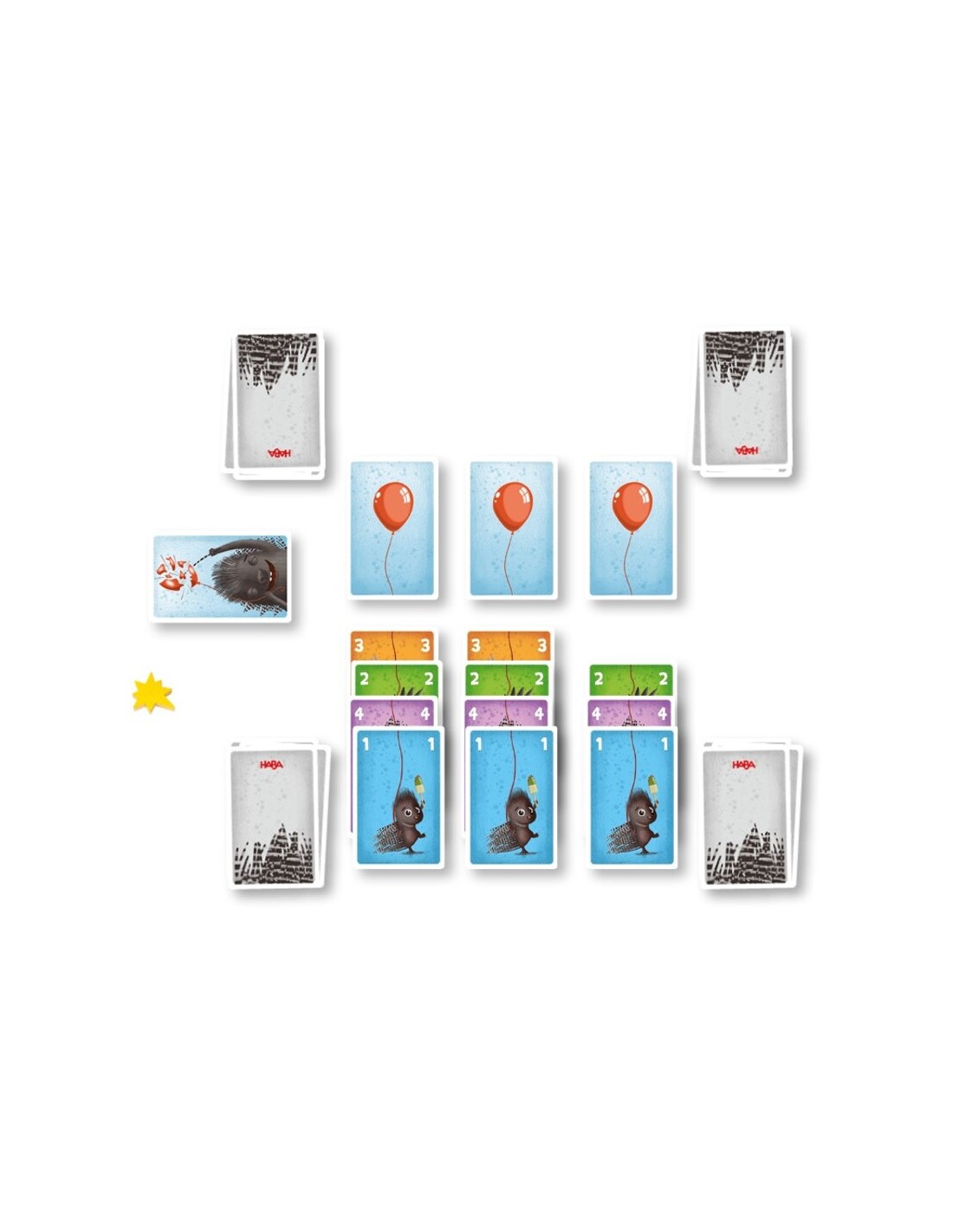 ¡Pim Pum! de HABA es un juego de cartas familiar con reglas sencillas. Los puercoespines están en la fiesta de los globos y les encanta pincharlos. Habrá que jugar bien las cartas para lograr ser el puercoespín que más globos explote y así deshacernos de nuestras cartas.