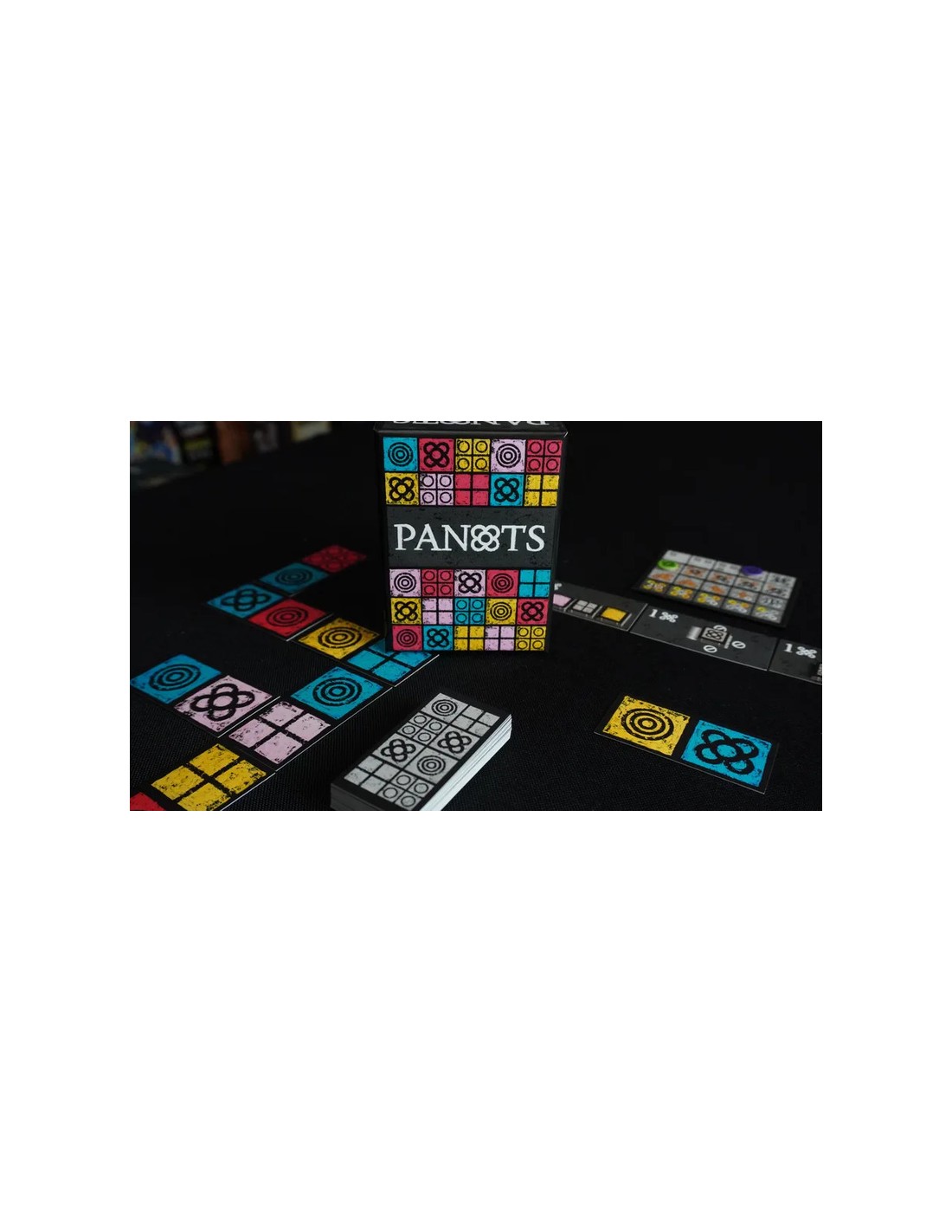 Panots es un juego familiar competirás por construir la acera más valorada. Deberás elegir los mejores panots para tu acera, o los que podrían complicarles el juego a tus oponentes. El panot es una baldosa de cemento, arena y agua que se usa para crear patrones decorativos en las aceras. ¡En este juego, se le ha dado vida y color a los panots, homenajeando a este símbolo de Barcelona!