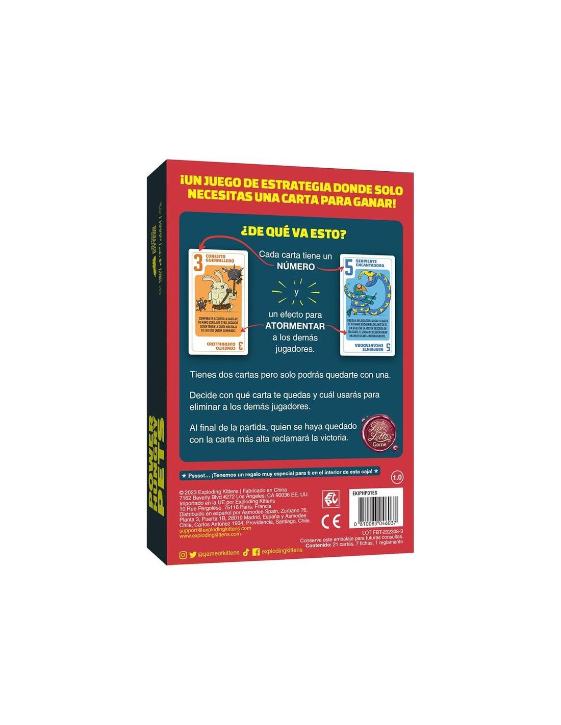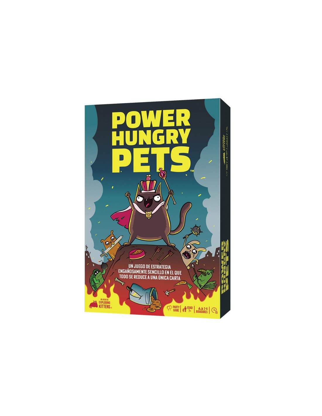 Power Hungry Pets es un juego de cartas familiar y estratégico creado por Exploding Kittens y diseñado por Seiji Kanai, el autor de Love Letter. Con partidas de solo 15 minutos para 2 a 6 jugadores, este juego combina faroleo, decisiones rápidas y mucho humor en un formato compacto y adictivo.