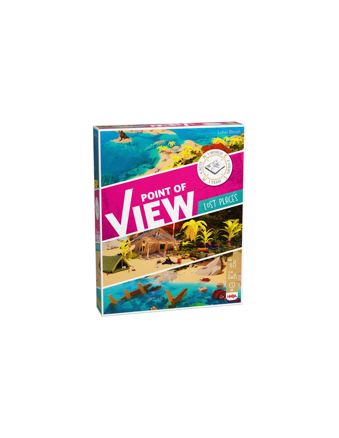 Point of View – Lost Places de HABA es un juego cooperativo para mayores de 10 años que pone a prueba la observación, la deducción y la comunicación en grupo. Cada jugador recibe una imagen del mismo lugar desde una perspectiva distinta (norte, sur, este u oeste) y, sin mostrarla, debe ayudar al equipo a resolver acertijos visuales mediante preguntas precisas.