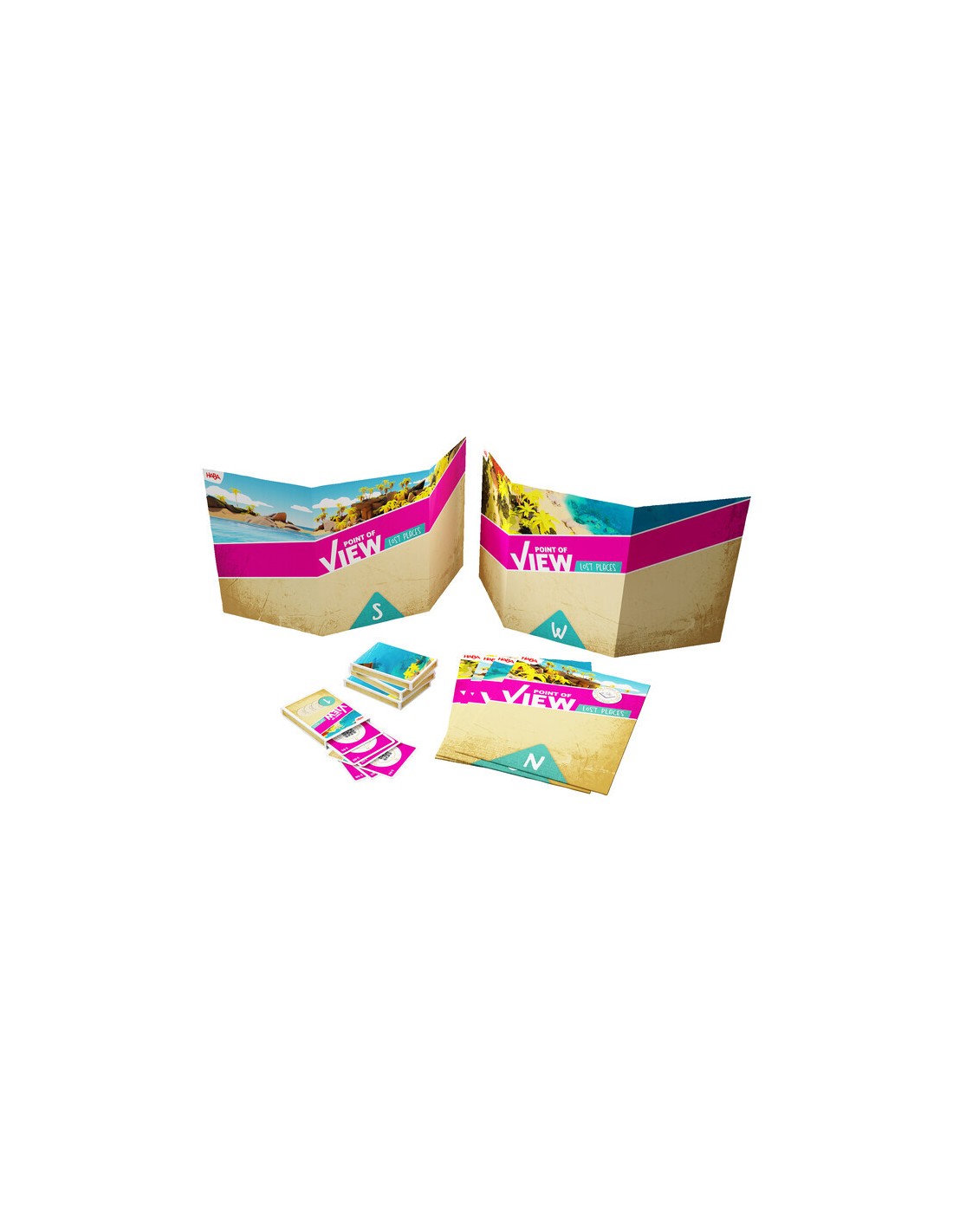 La clave del éxito en Point of View - Lost Places reside en que nadie tiene el panorama completo. Cada jugador recibe uno de los cuatro grandes planos desplegables (Norte, Sur, Este u Oeste) que muestran la misma escena temática con un asombroso estilo 3D, pero desde una perspectiva diferente. ¡Mostrar tu mapa al resto del equipo está prohibido!