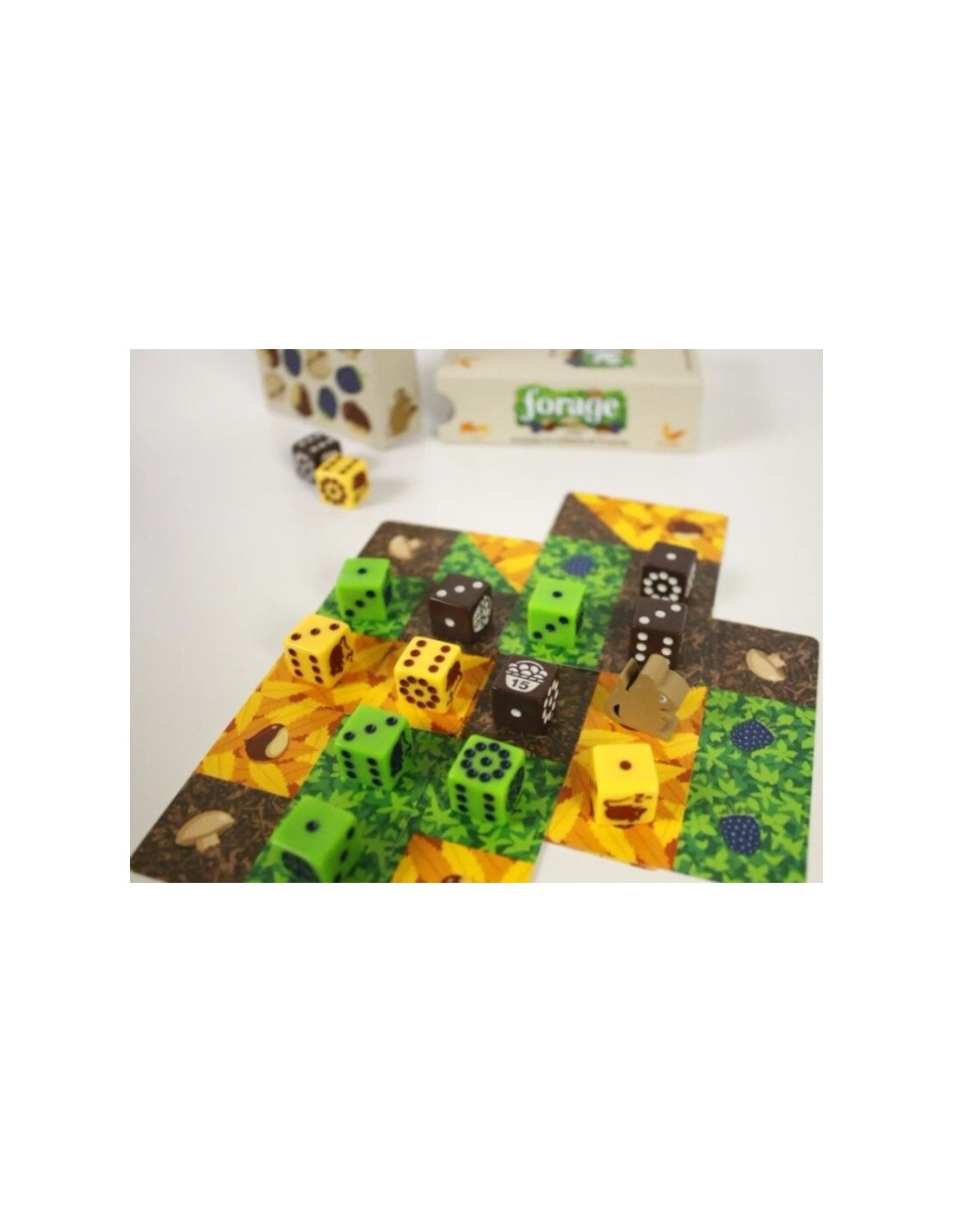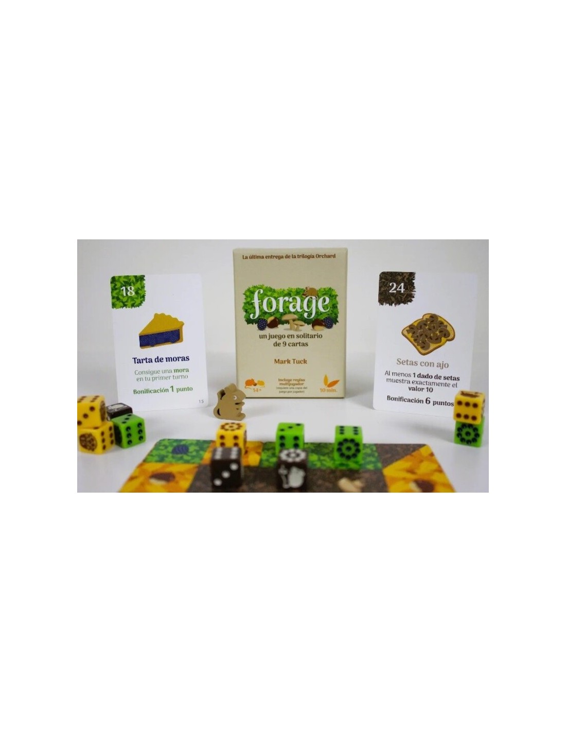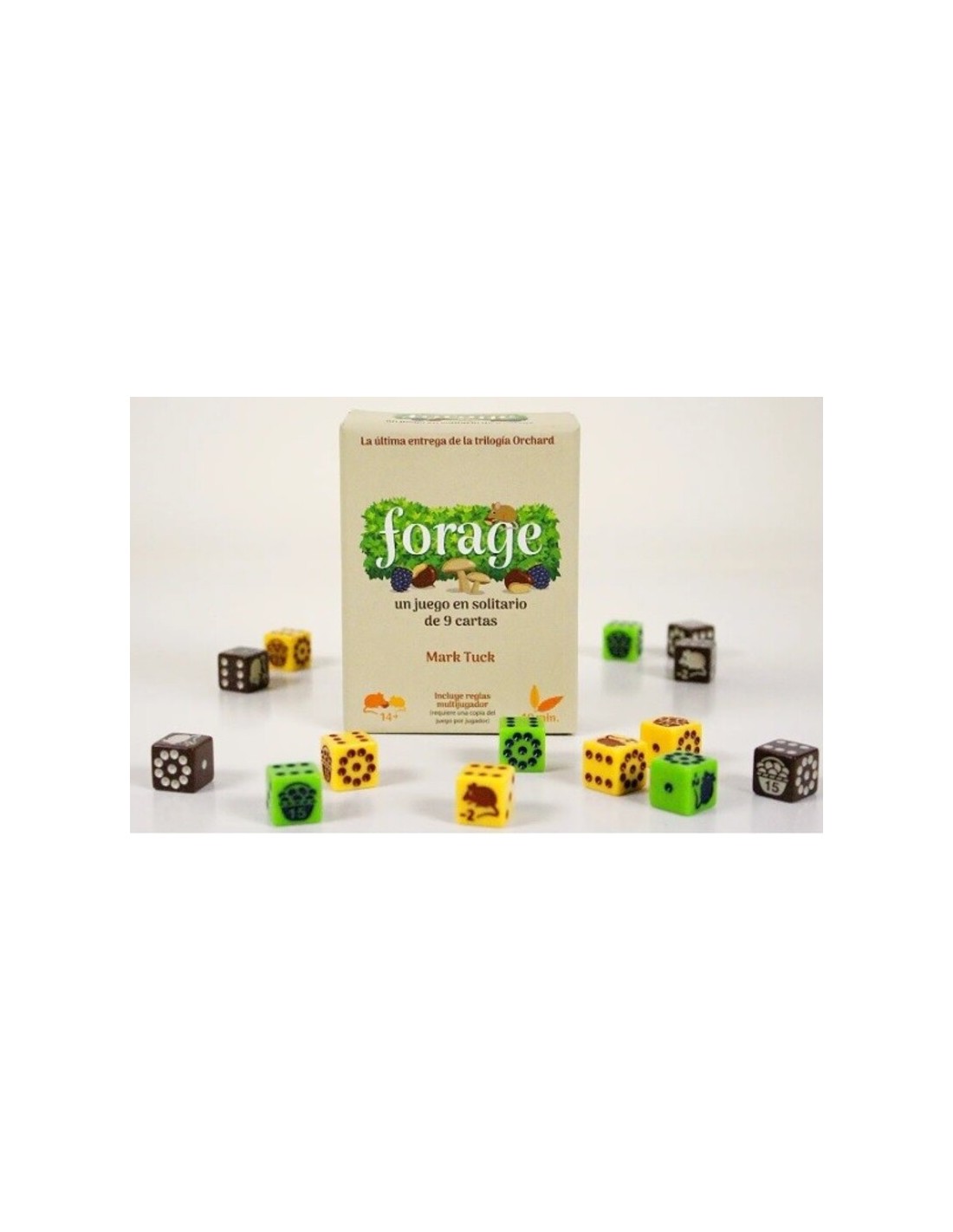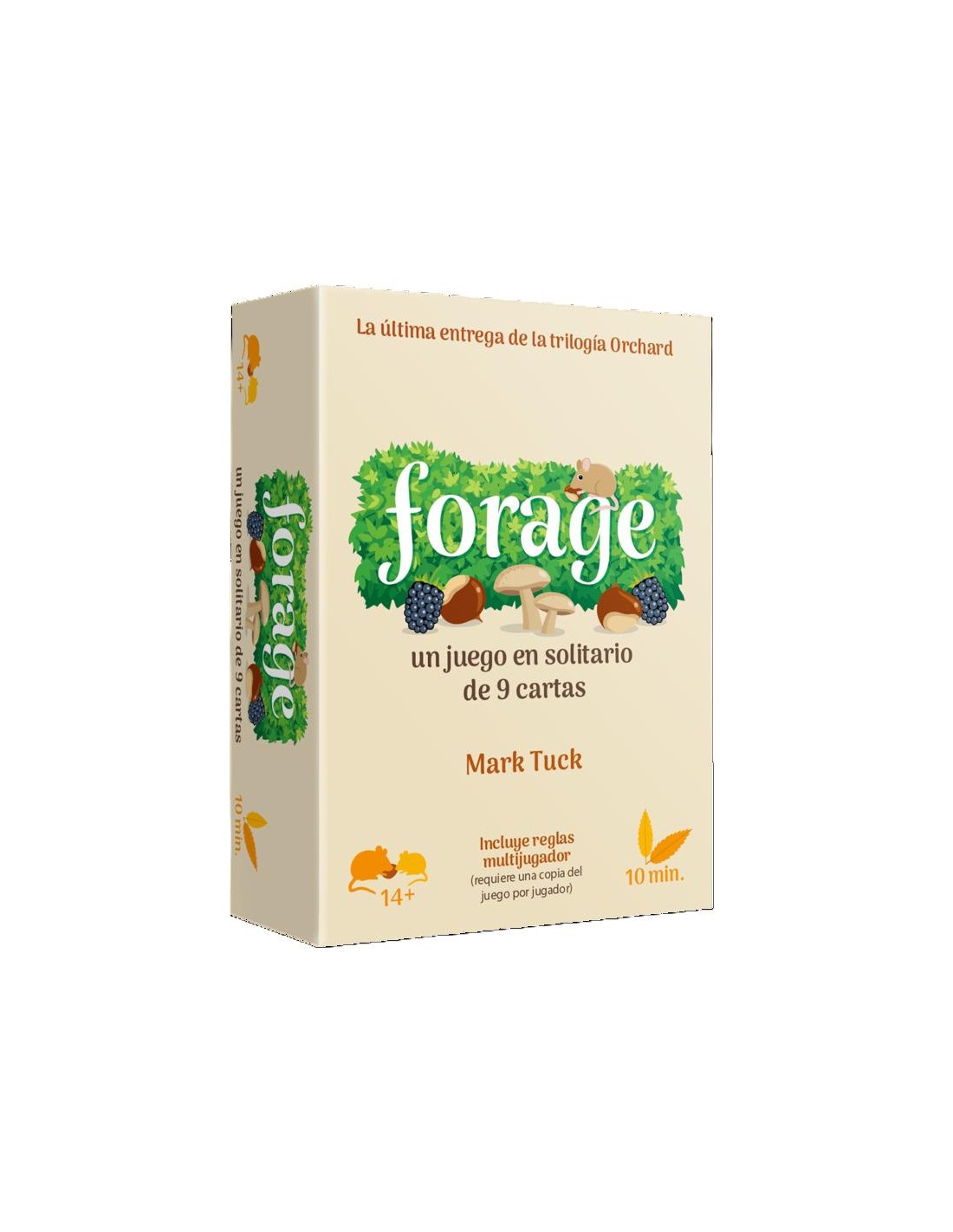 Forage es un juego en solitario de cartas y dados con partidas de una duración de unos 10 minutos, con una edad recomendada de 14 años en adelante. Incluye reglas multijugador (requiere una copia del juego por jugador).