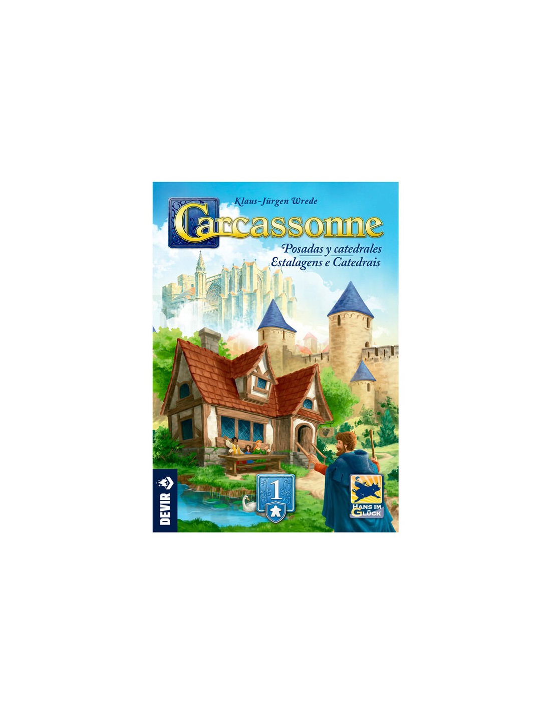 La primera expansión de Carcassonne incluye nuevas losetas, reglas y, lo más importante, las piezas necesarias para aumentar el número de jugadores hasta un máximo de seis. El resto de expansiones incluyen ya las piezas adicionales para este sexto jugador, pero es necesario contar con la de Posadas y Catedrales para que sea posible jugar. Las nuevas reglas de Posadas y catedrales incluyen las posadas de los caminos, que aumentan el valor de las carreteras, y las catedrales, que triplican el valor de las ciudades si los jugadores consiguen cerrarlas, aunque aumentan el riesgo, ya que una ciudad que incluya una catedral y no sea completada no otorgará ningún punto.