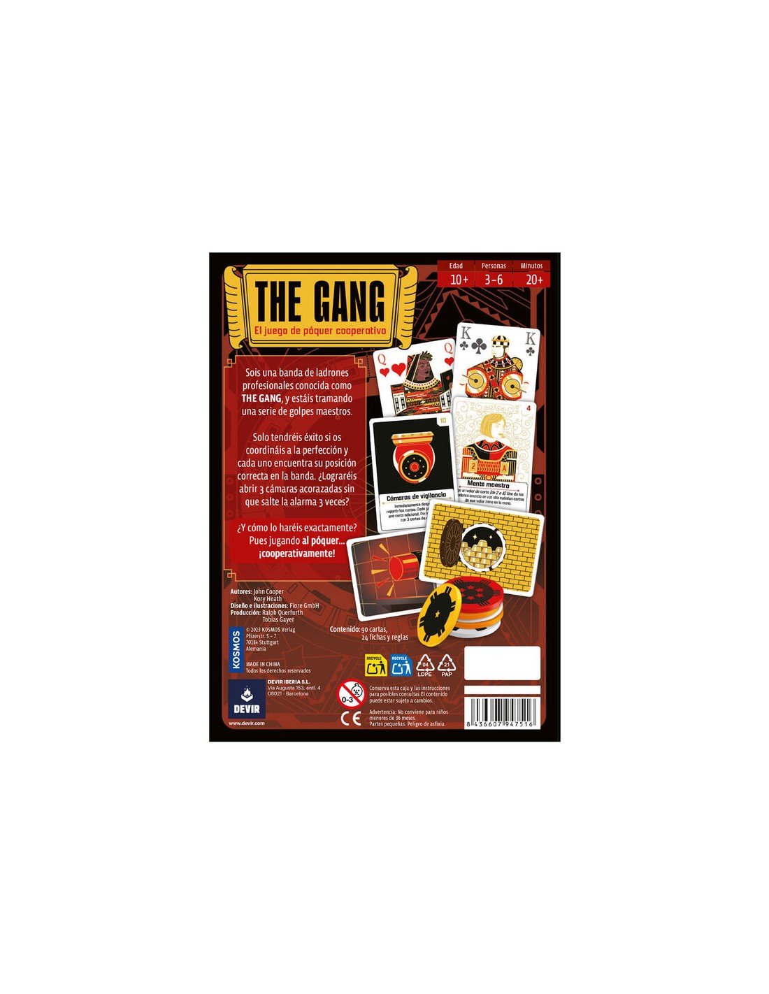 Diseñado por John Cooper y Kory Heath, The Gang permite partidas para grupos de 3 a 6 personas, a partir de 10 años, de unos 20 minutos de duración. Una partida de The Gang consta de 3 a 5 golpes. Cada golpe consta de 4 rondas, seguidas de la fase de Revelar. Al final de cada golpe, comprobaréis si habéis tenido éxito o no. Ganáis la partida si tenéis éxito en 3 golpes. Perdéis si fracasáis 3 veces.