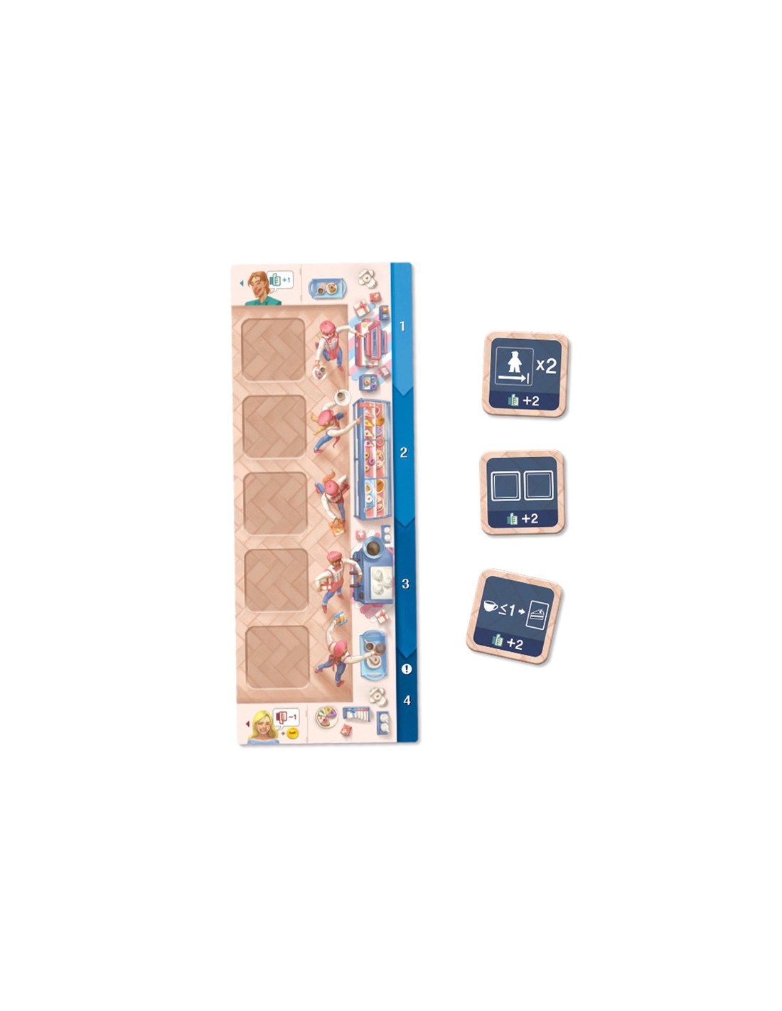 Os damos la bienvenida de nuevo. Vuestra cafetería se está expandiendo y las riquísimas bebidas que servís ya no os parecían suficiente, así que ahora también ofrecéis tartas con las que queréis hacer aún más felices a vuestros clientes. Contratad personal y utilizad sus habilidades para sobrevivir al ajetreo.