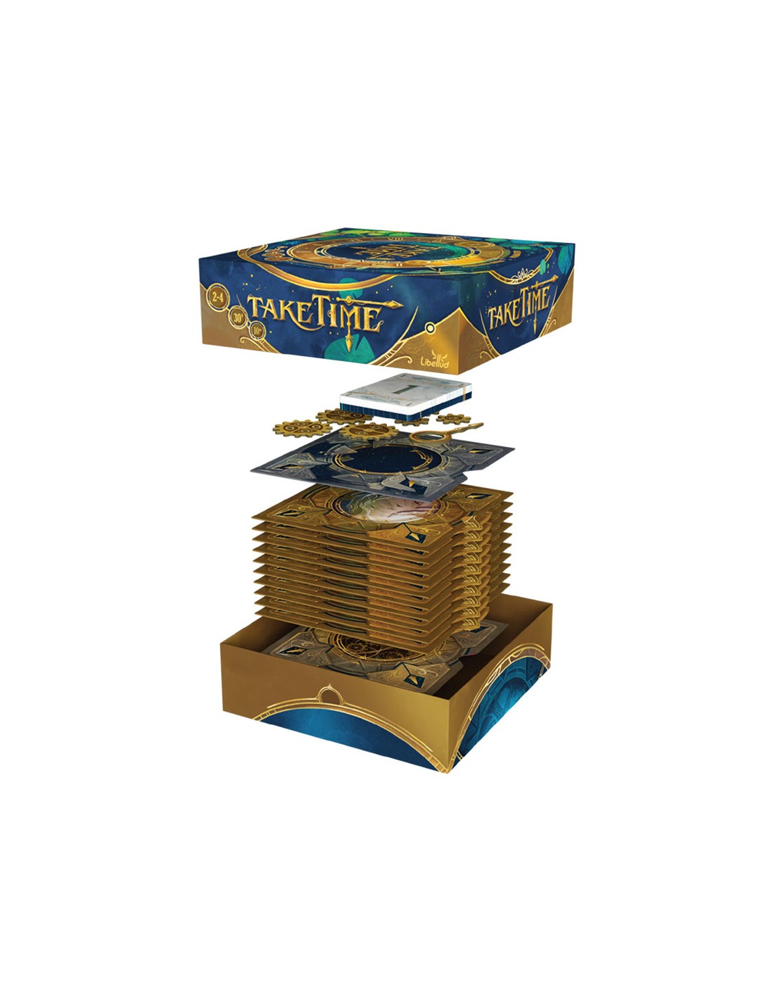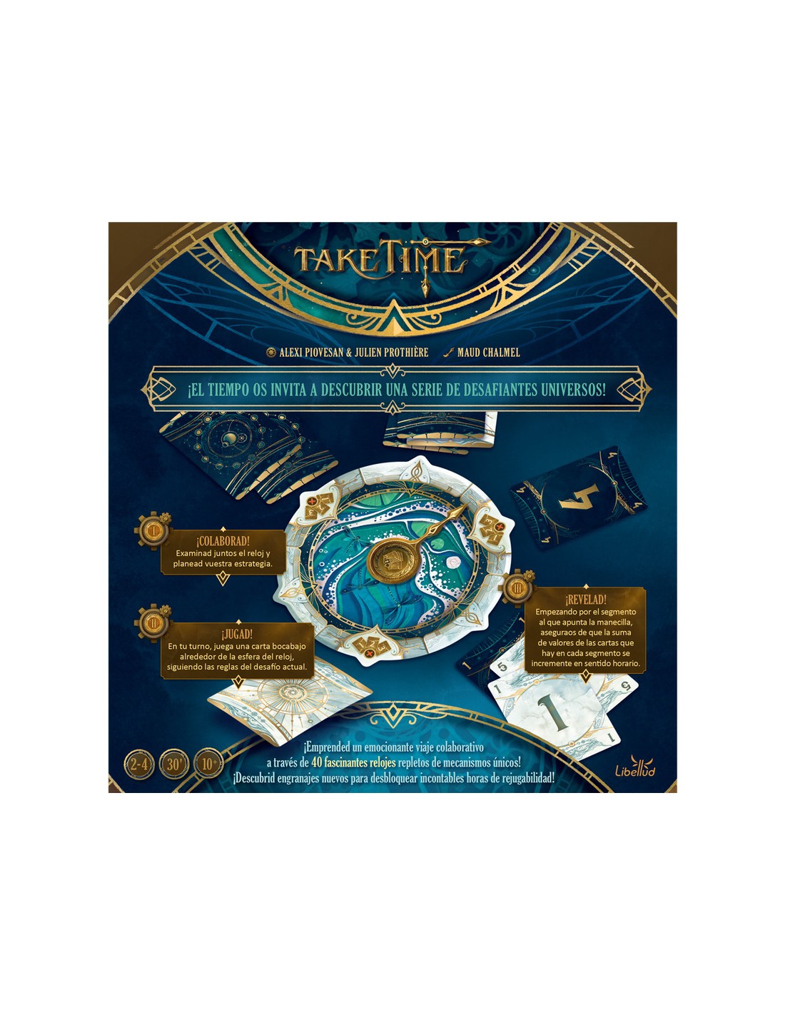 Take Time es un juego cooperativo en el que los participantes deben colaborar para superar diversas pruebas, por lo que la victoria o la derrota serán colectivas. Para ganar, debéis jugar de manera estratégica 12 cartas bocabajo alrededor de un reloj, siguiendo las reglas especiales que se aplican en cada prueba. El juego incluye 40 pruebas que irán aumentando de dificultad y añadiendo reglas nuevas. ¿Podréis superarlas todas?¡Tomaos un tiempo para disfrutar de este maravilloso viaje de principio a fin!