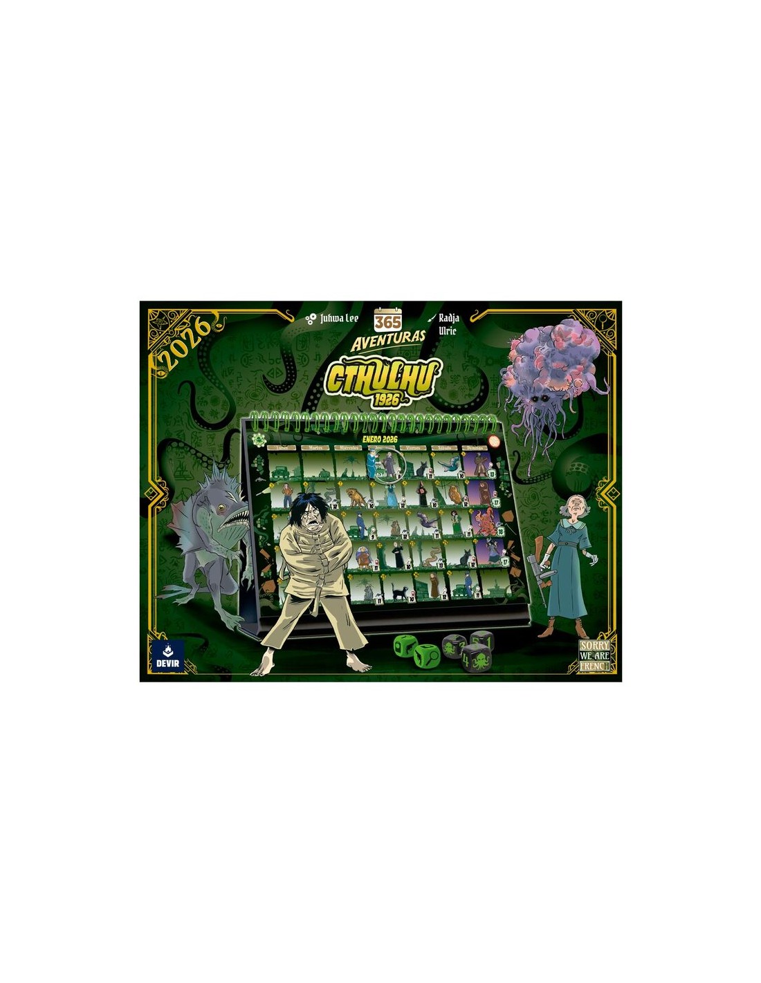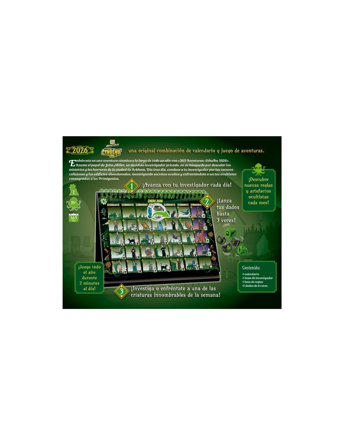 CALENDARIO 365 ADVENTURES CTHULHU es una experiencia única que combina la funcionalidad de un calendario de escritorio con un juego de mesa solitario de inmersión en el universo de H.P. Lovecraft. Es el juego perfecto para los amantes del horror cósmico que buscan un desafío diario y rápido de micro-gaming.