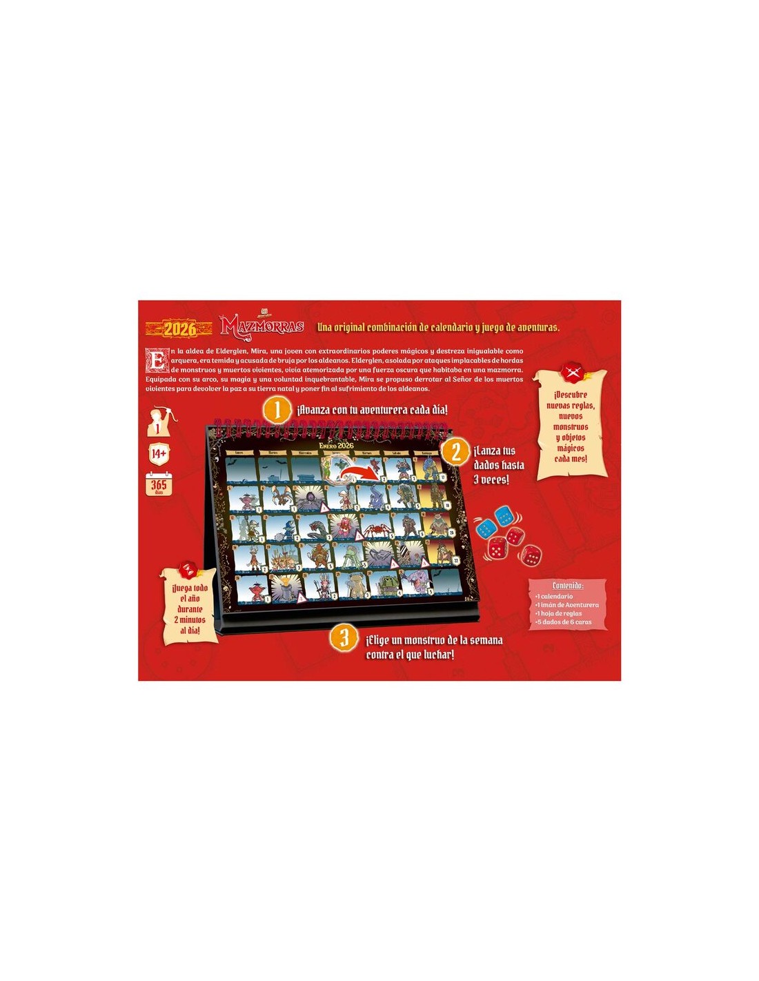 ¡Una original combinación de calendario y juego de aventuras! Embárcate en una aventura épica a lo largo de un año para descubrir una mazmorra colosal. Día tras día, conducirás a tu aventurera por los oscuros pasadizos de un gran laberinto, explorando cada nivel y enfrentándote a un sinfín de monstruos, trampas y sorpresas inesperadas. Anota tu puntuación de cada mes, mejora tu arsenal con objetos mágicos y desbloquea nuevas sorpresas a medida que avanzas.