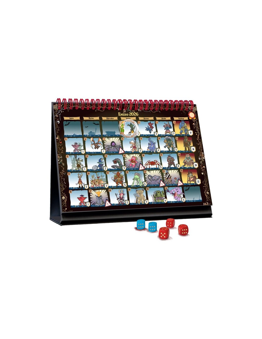 CALENDARIO 365 ADVENTURES DUNGEON es una original y adictiva combinación de calendario de escritorio y juego de mesa dungeon crawler en solitario. Convierte tu ritual diario de pasar página en una épica aventura rolera que se extiende a lo largo de 365 días.