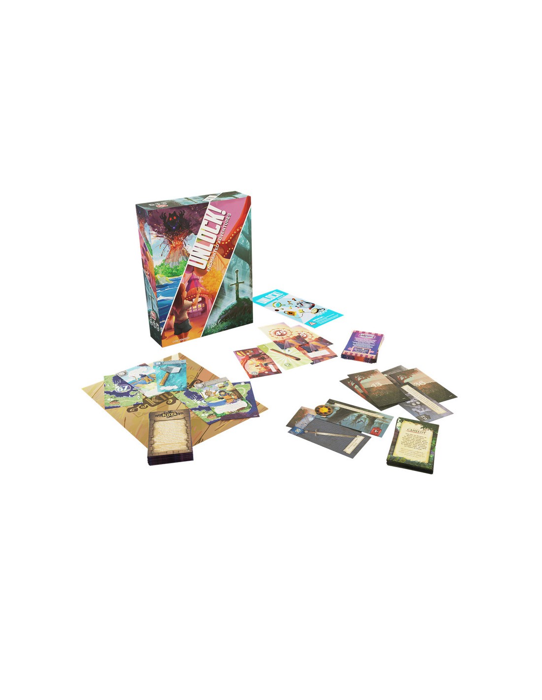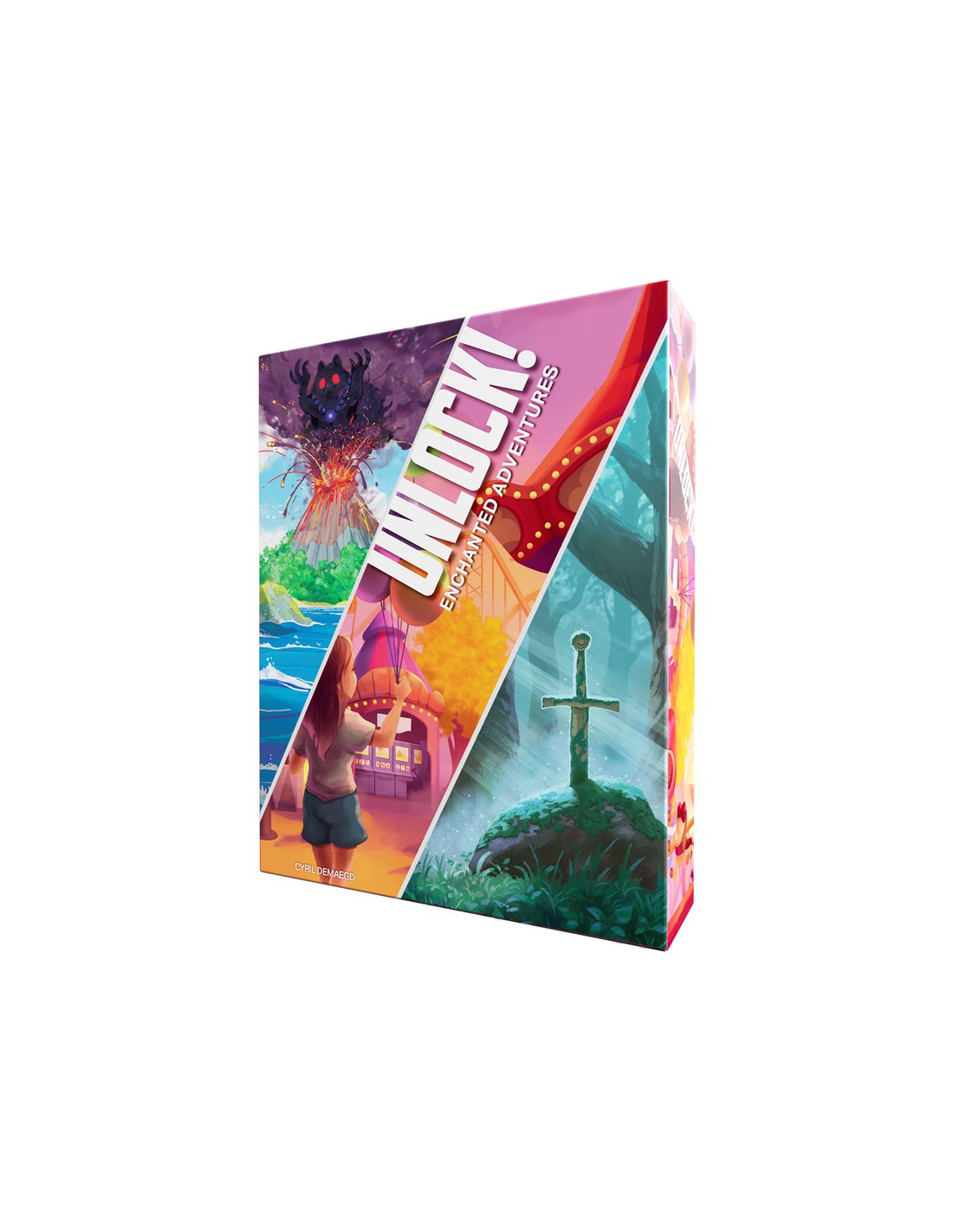 ¡Vive la emoción de un escape room sin salir de casa con UNLOCK! Enchanted Adventures! Este juego de cartas cooperativo te sumerge en tres fascinantes aventuras independientes, llenas de misterios, acertijos y puzles que deberás resolver colaborando con tu equipo.
