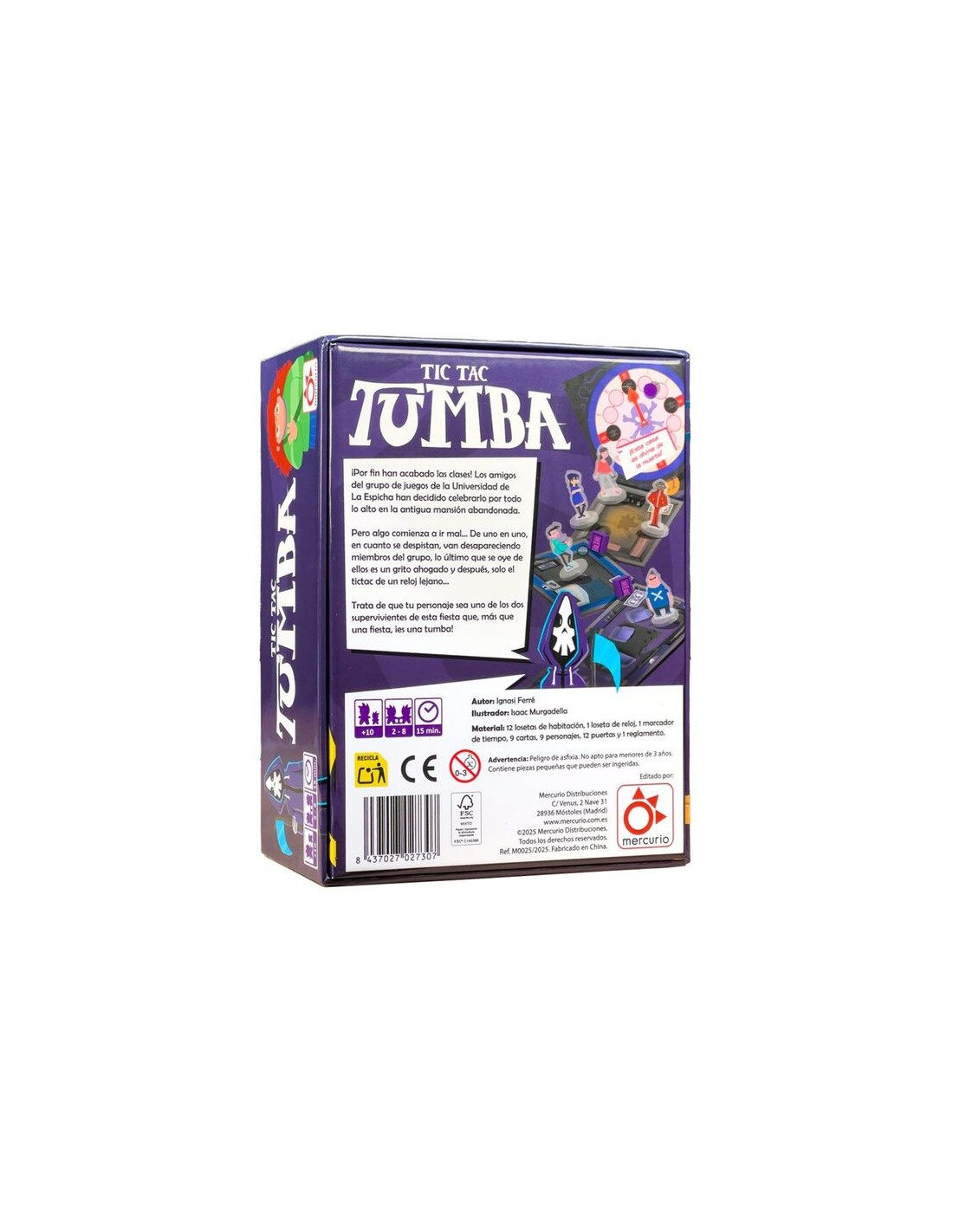 Tic Tac Tumba, diseñado por Ignasi Ferré e ilustrado por Isaac Murgadella, es una de las novedades más intrigantes de Mercurio Distribuciones. Este juego de mesa familiar combina roles ocultos, estrategia ligera y una ambientación de suspense que recuerda a películas como Scary Movie o Cluedo. Los jugadores encarnan a estudiantes que celebran el fin de curso en una mansión abandonada… pero algo siniestro acecha entre las sombras.