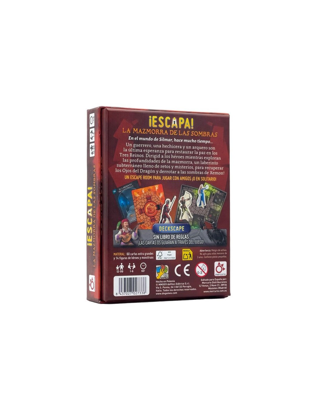 ¿Buscas un juego de escape room de bolsillo que combine el género de mazmorreo con la emoción de resolver puzles? ¡Escapa! La Mazmorra de las Sombras es la elección perfecta. Este aclamado juego de cartas te sumerge en una épica aventura cooperativa en el mundo de Silmar.