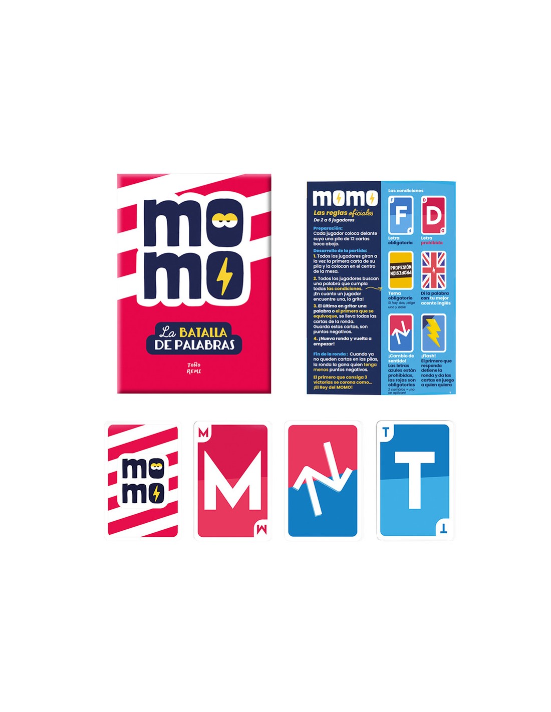 Descubre MOMO, un juego de cartas rápidas y frenéticas que pone a prueba tu vocabulario, agilidad mental y velocidad. Ideal si buscas un filler dinámico, divertido y muy rejugable para jugar con amigos o en familia.