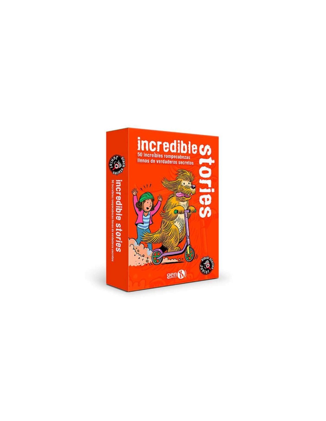 ¿Alguna vez has escuchado una historia tan extraña que parece imposible? ¡De eso trata Black Stories Junior: Incredible Stories! Esta edición reúne 50 acertijos basados en situaciones asombrosas, sucesos curiosos y anécdotas increíbles que desafiarán la lógica de niños y adultos por igual. Es el juego de cartas ideal para los pequeños detectives que siempre preguntan "¿por qué?" y no se conforman con una respuesta simple.