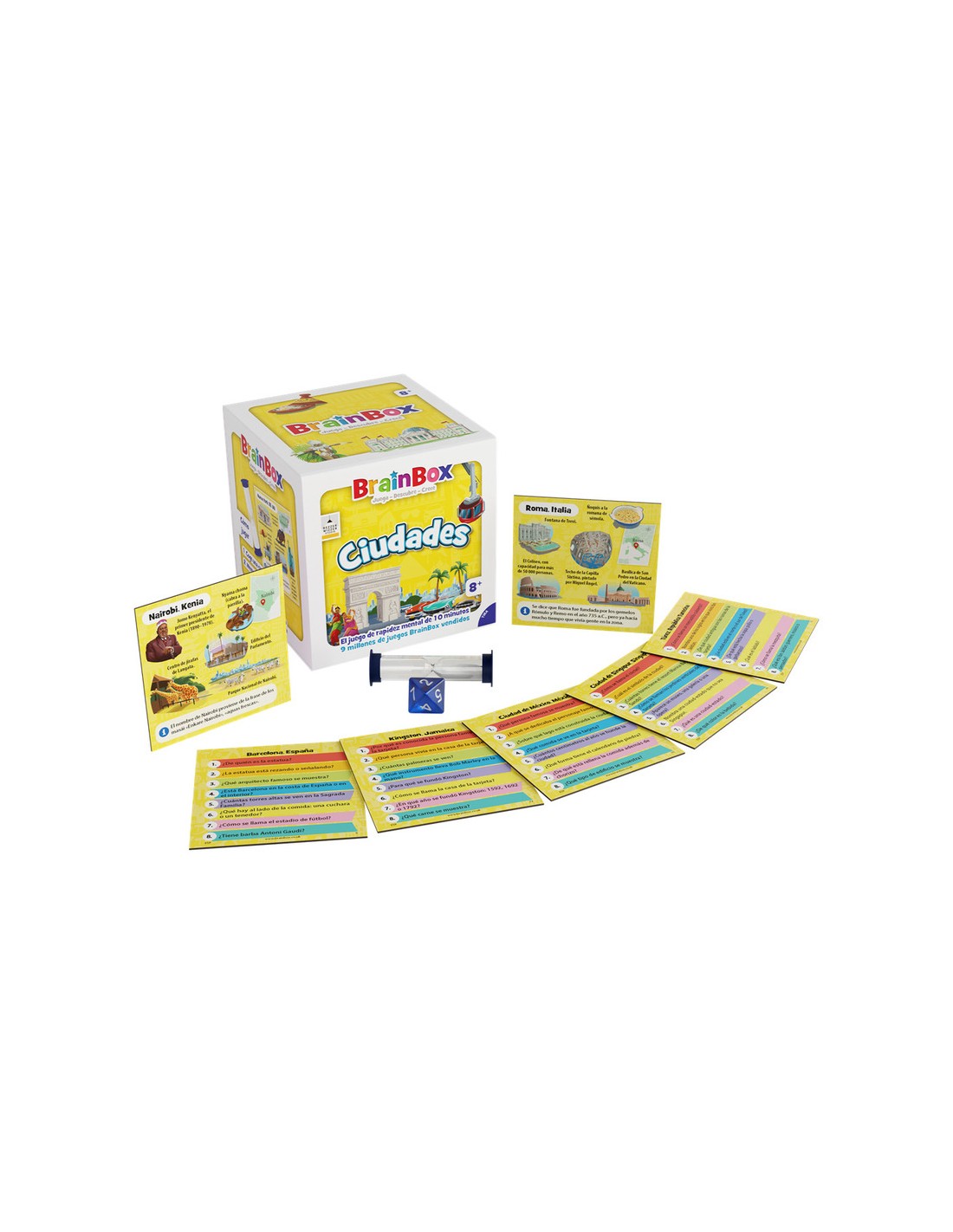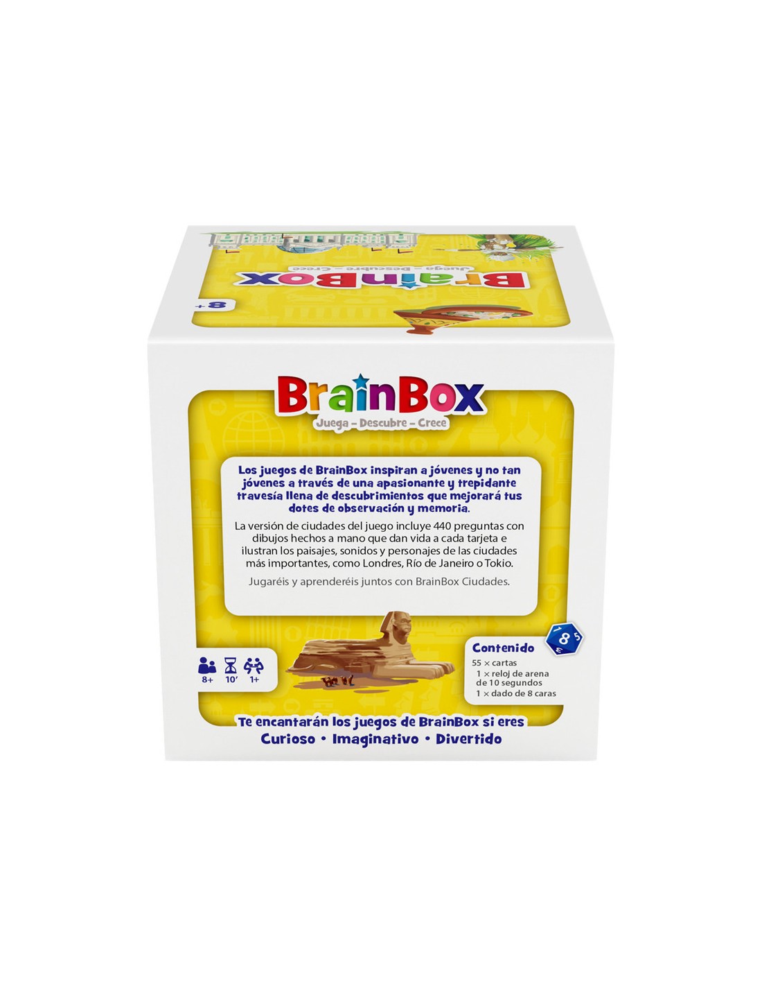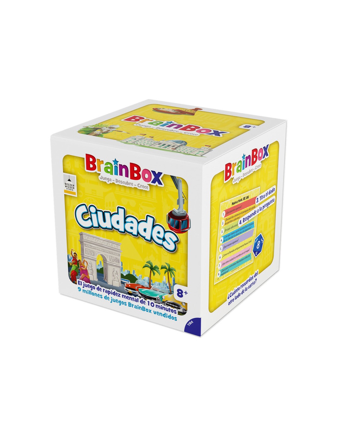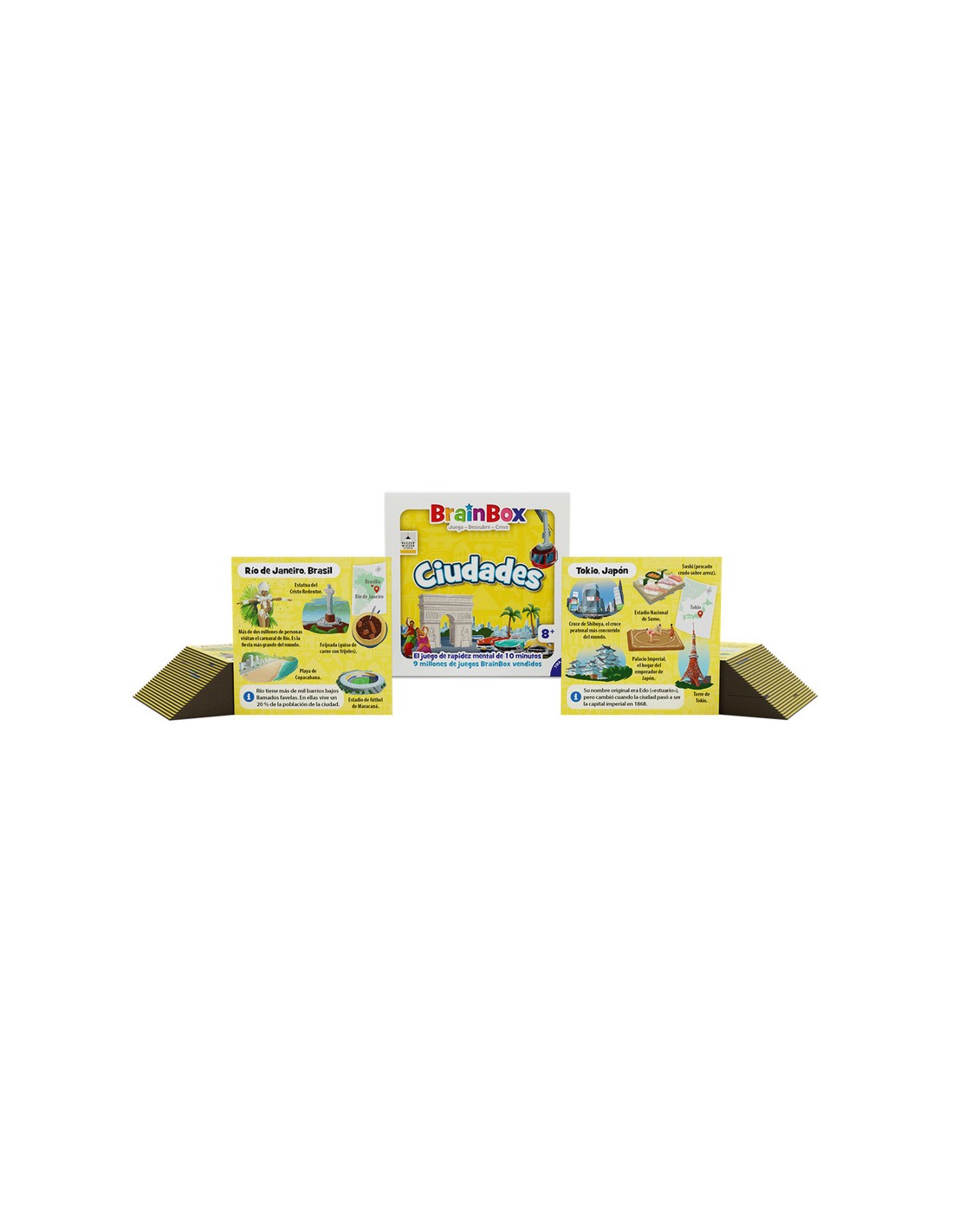BrainBox Ciudades es un juego de mesa rápido y educativo que ayuda a los niños a aprender sobre distintas ciudades del mundo mientras desarrollan memoria visual y concentración. Ideal para jugar en familia, en el aula o como recurso didáctico, cada partida dura solo 10 minutos y puede jugarse en solitario o en grupo.