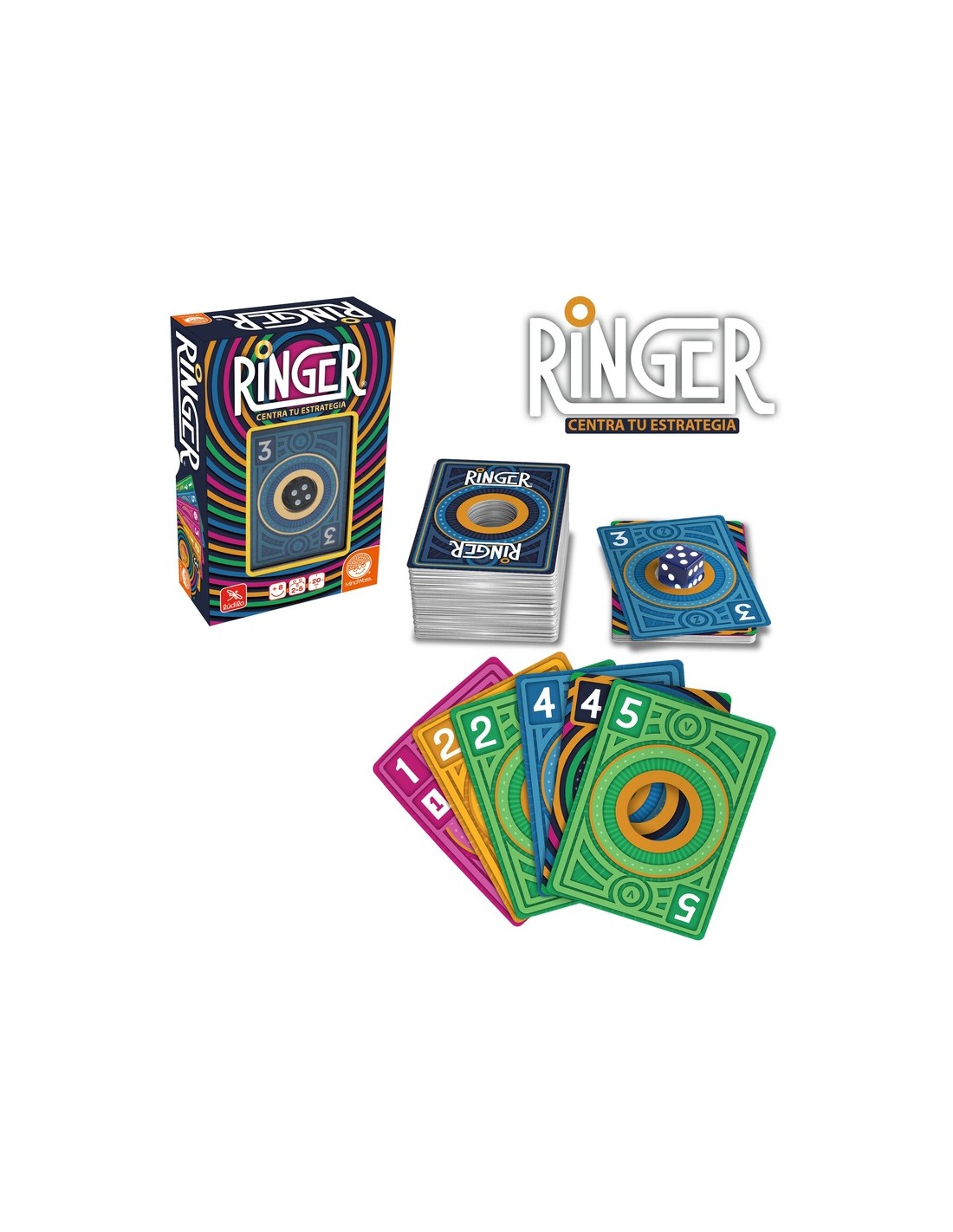 Ringer es un juego compacto que mezcla azar y estrategia: tiras un dado, creas una secuencia de cartas para igualar su número y, si lo consigues, obtienes un Ringer. Las cartas de efecto permiten robar, relanzar el dado o incluso tomar el control del turno de otro jugador, añadiendo tensión y decisiones tácticas