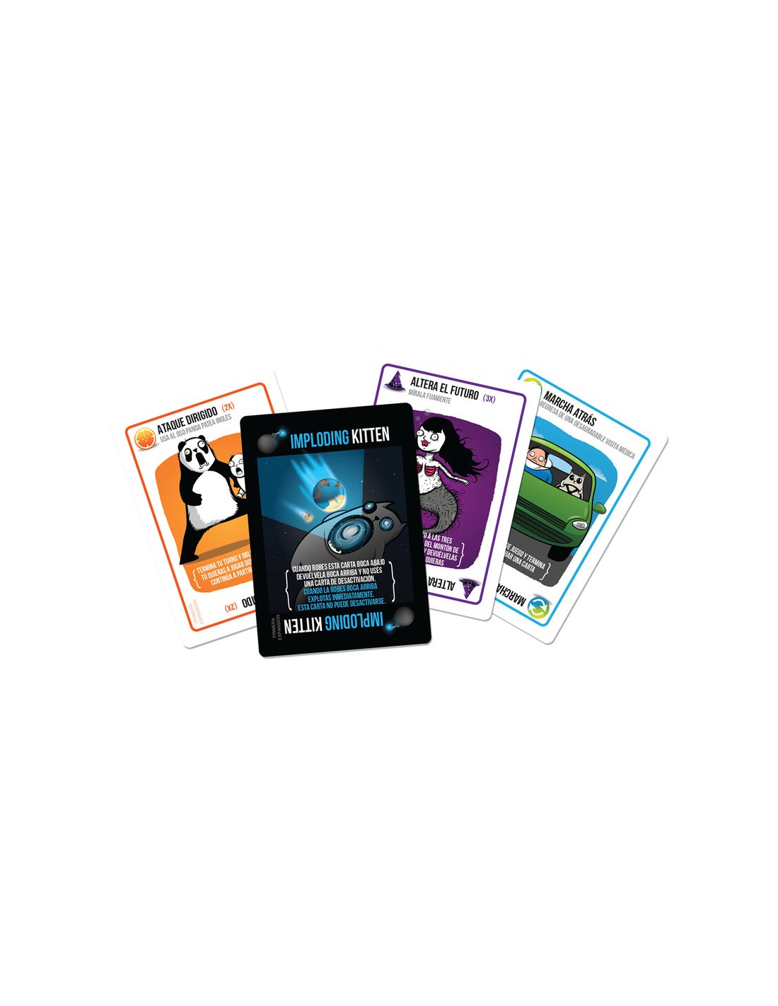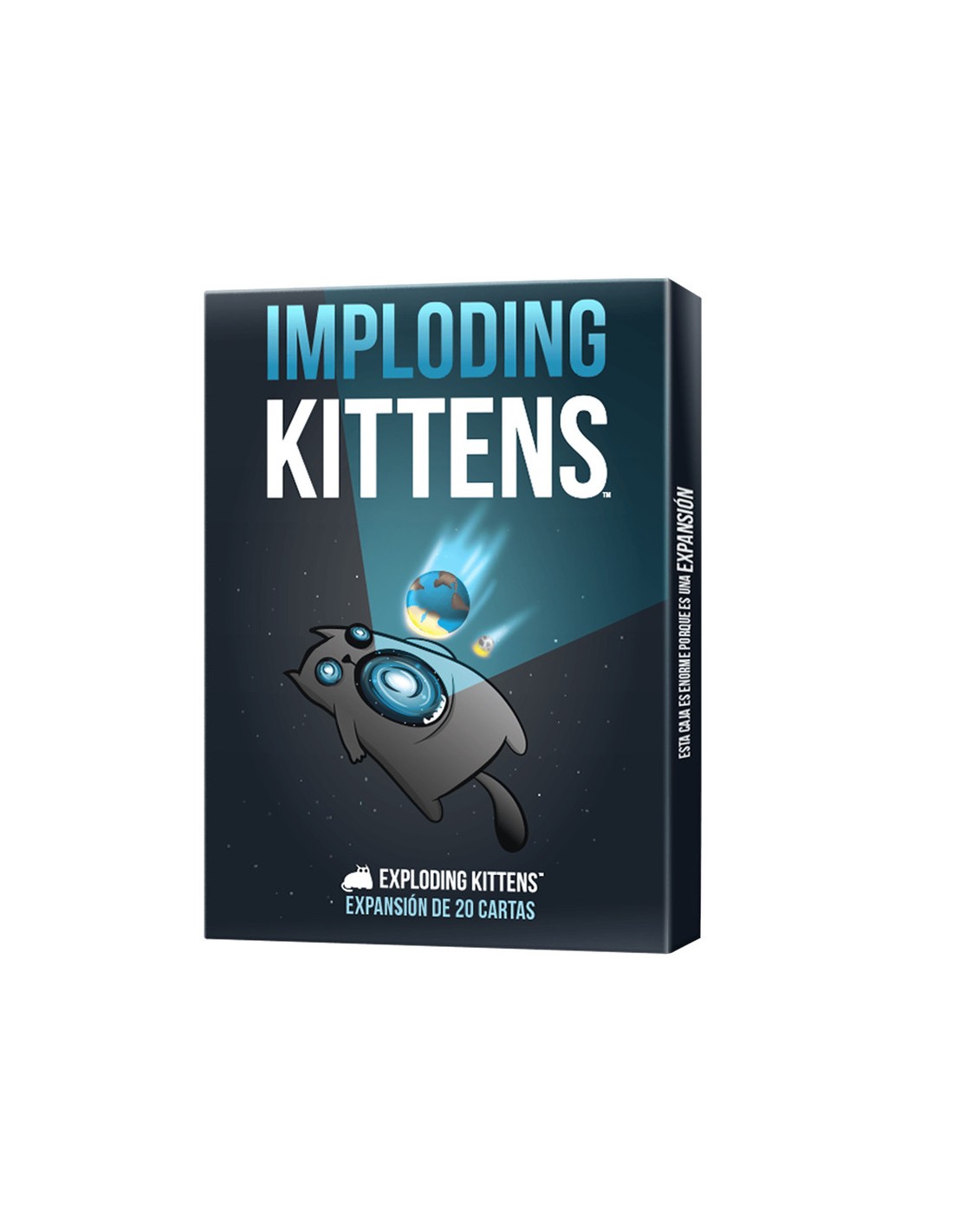 Imploding Kittens es la primera expansión de Exploding Kittens y añade 20 cartas nuevas, la posibilidad de sumar un sexto jugador y un cono de la vergüenza.