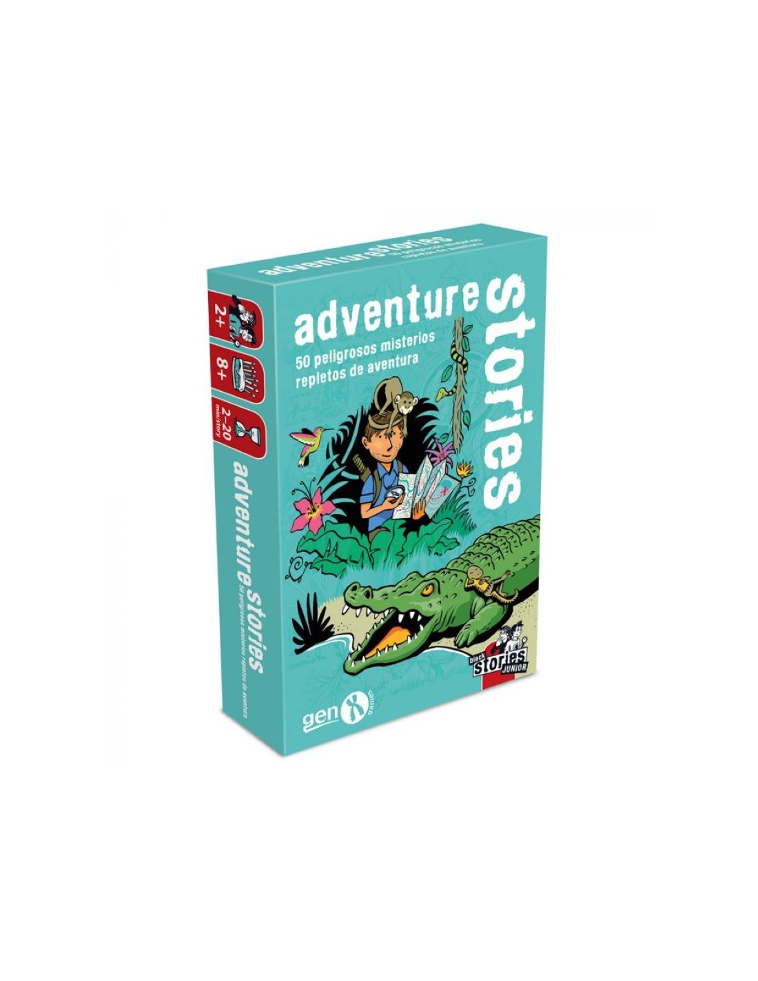 Adventure Stories es uno popular juego de cartas. Diseñado para mentes curiosas y amantes de la adrenalina, este juego desafía a los jugadores a resolver enigmas basados en expediciones de supervivencia, leyendas de la selva y expediciones fallidas.