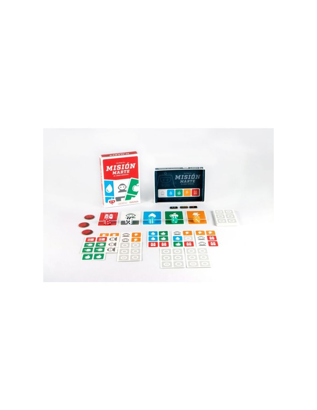 Misión Marte es un juego de mesa que te transporta al planeta rojo. Ha llegado el gran momento de terraformar Marte y hay que equipar la nave con todos los recursos necesarios para cumplir la misión: TRIPULACIÓN, AGUA, COMIDA, ENERGÍA y OXÍGENO.