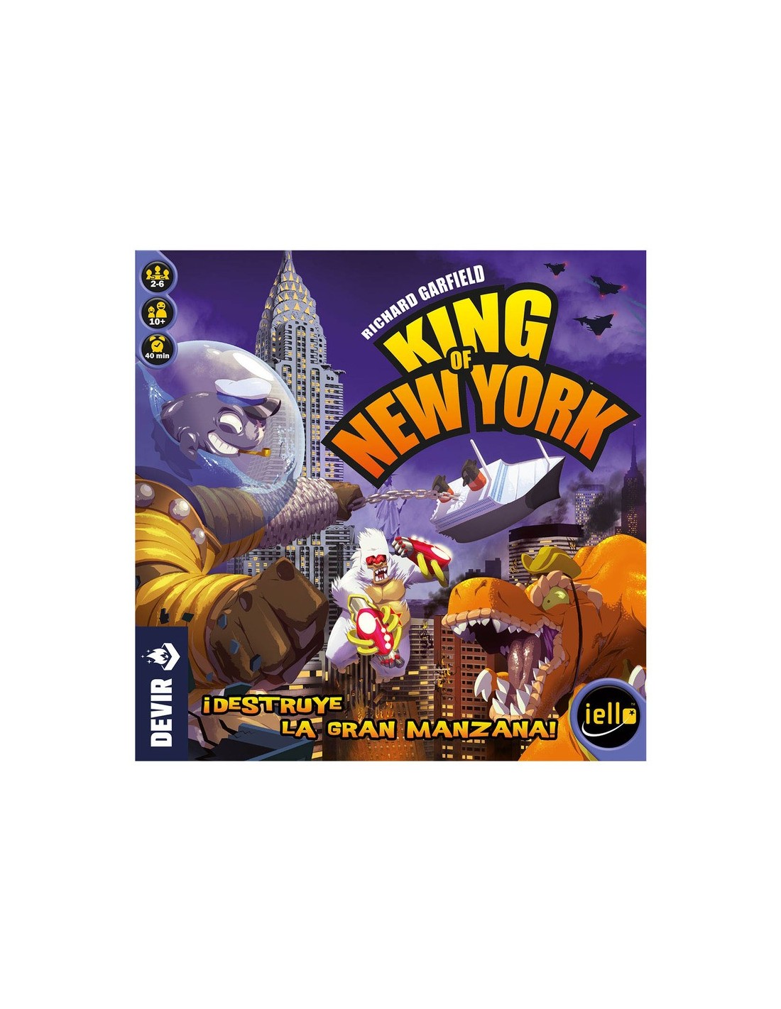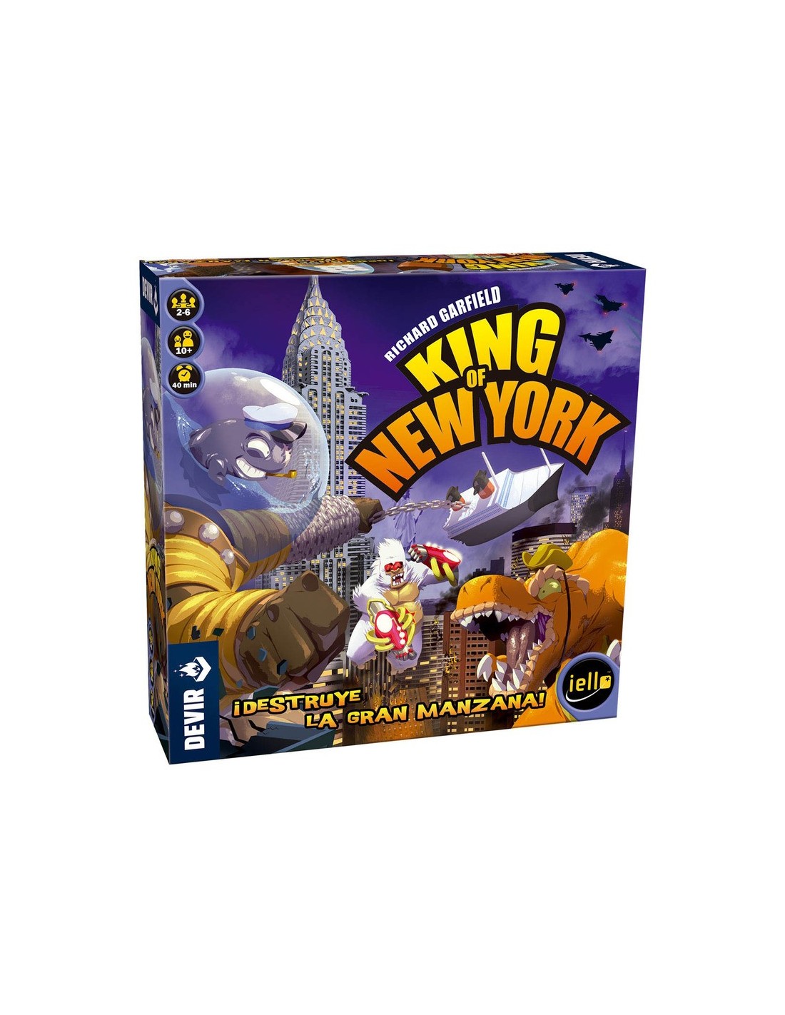 King of New York es un juego del famoso creador Richard Garfield en el que deberás pelear con otros monstruos gigantes para obtener el control de Nueva York. Para conseguirlo, ataca a tus enemigos y obtén habilidades nuevas, destruye edificios, escapa del ejército y de sus armas, y conquista el corazón de los neoyorquinos obteniendo puntos de fama.