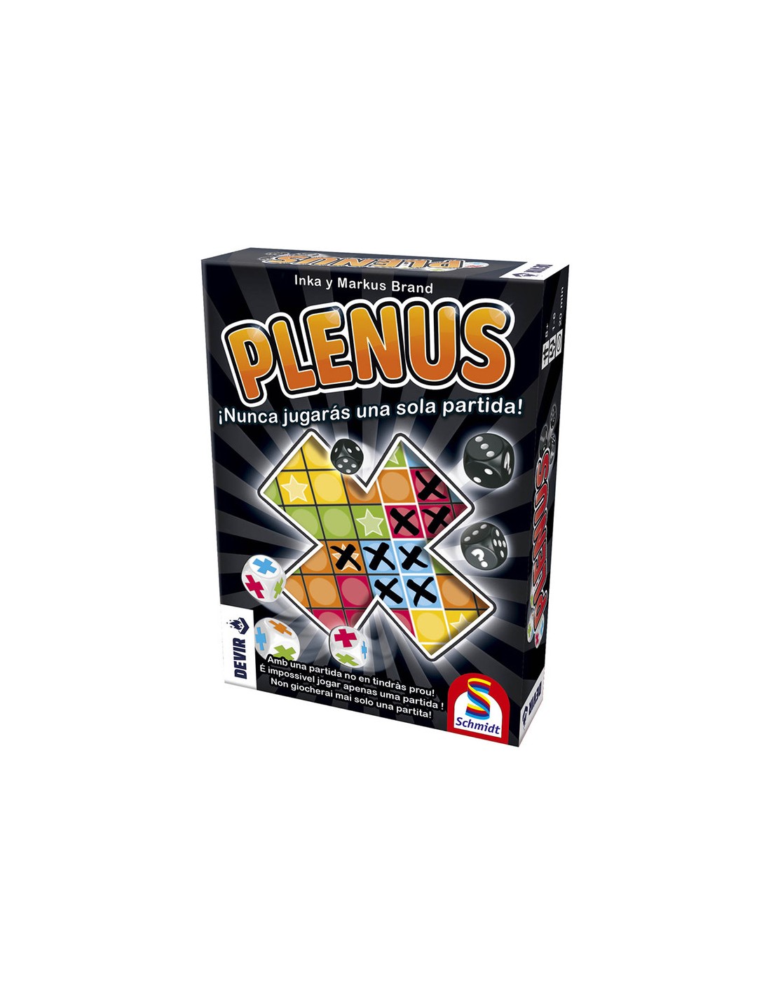 Plenus es un sencillo y adictivo juego de roll and write de los creadores de la saga Exit, Inka Brand, Markus Brand. Tan sólo hay que tirar los dados en función de ellos tachar las casillas más convenientes para poder puntuar. Todos los jugadores juegan al mismo tiempo con lo que no hay posibilidad de aburrise. Es también ideal para dos jugadores y cuenta con una variante en solitario.