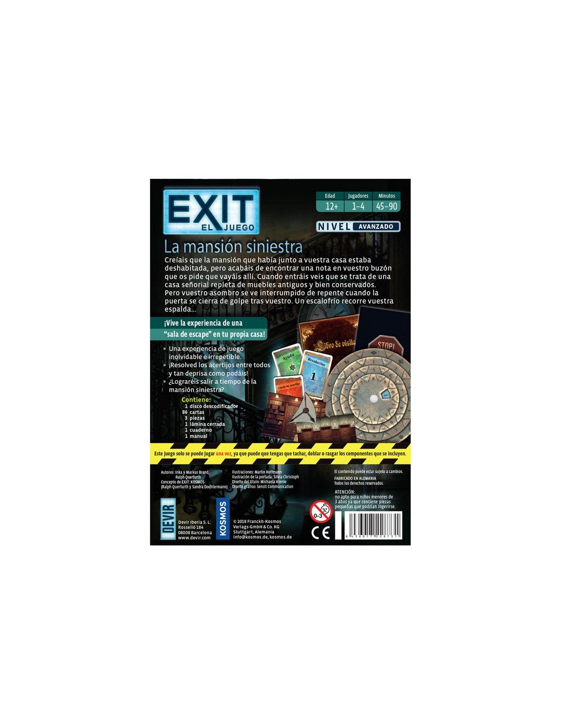 Exit: La mansión siniestra es el undécimo título de la serie Exit, diseñado por los autores alemanes Inka y Markus Brand en el año 2018 y está ambientado en una extraña mansión en la que los jugadores se ven atrapados por un viejo enemigo. ¿Lograréis escapar?