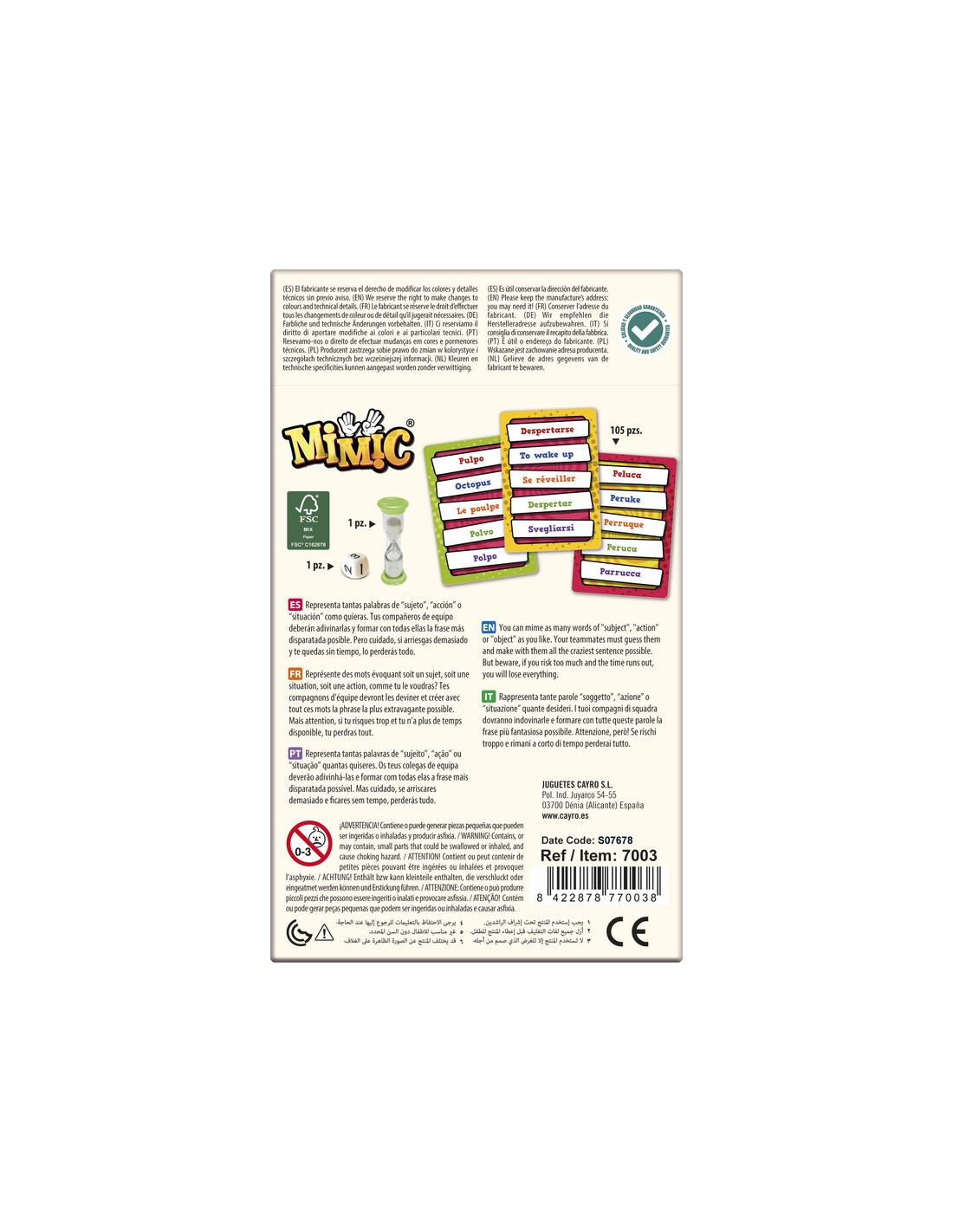 Mi Mic es un juego de mesa familiar diseñado por Cayro que combina mímica, sonidos y frases disparatadas para poner a prueba la imaginación y el trabajo en equipo. Ideal para niños y adultos a partir de 8 años, este juego estimula habilidades como la expresión corporal, la memoria y la competencia lingüística