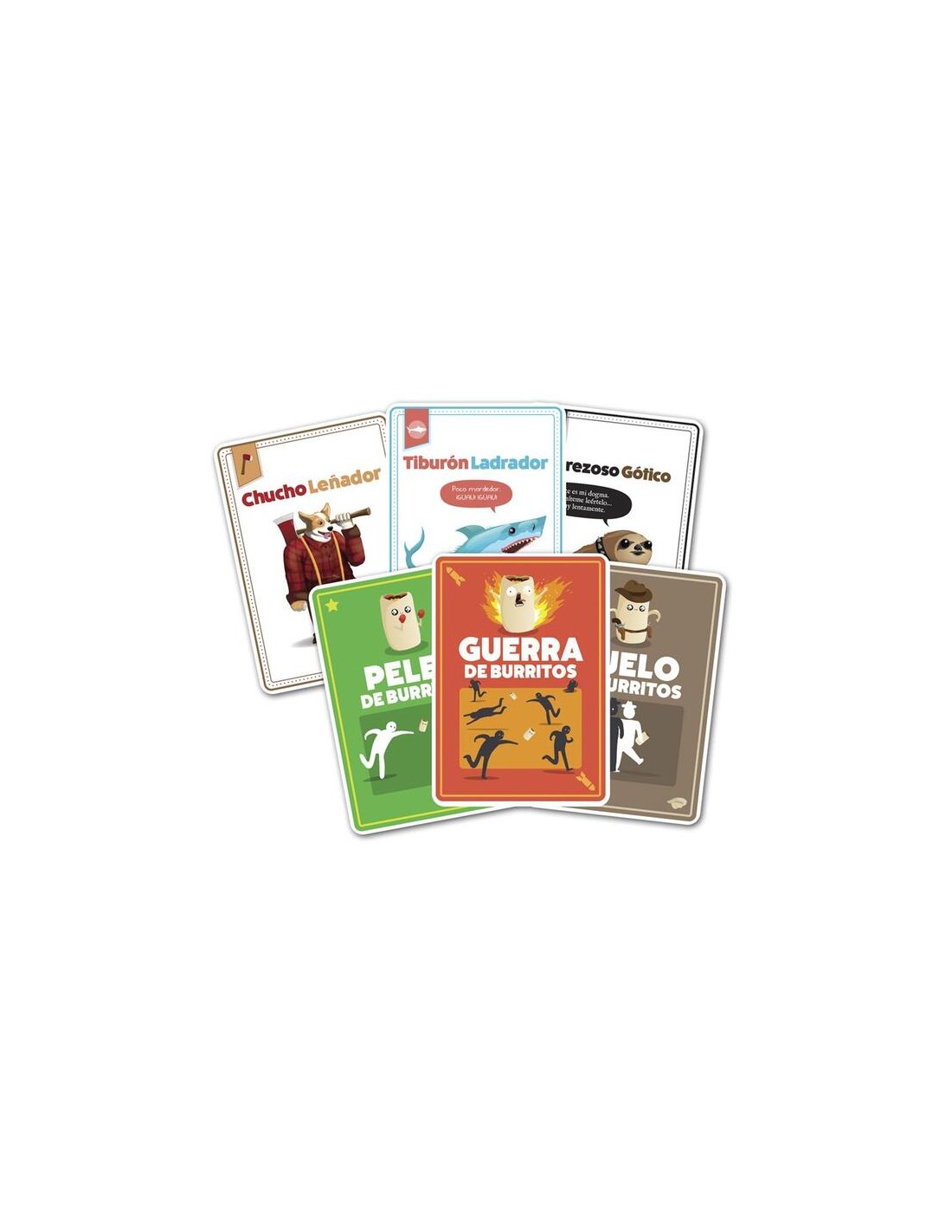 120 cartas, 2 Burritos, 6 fichas de Moratón de Burrito y 1 Insignia Témeme.