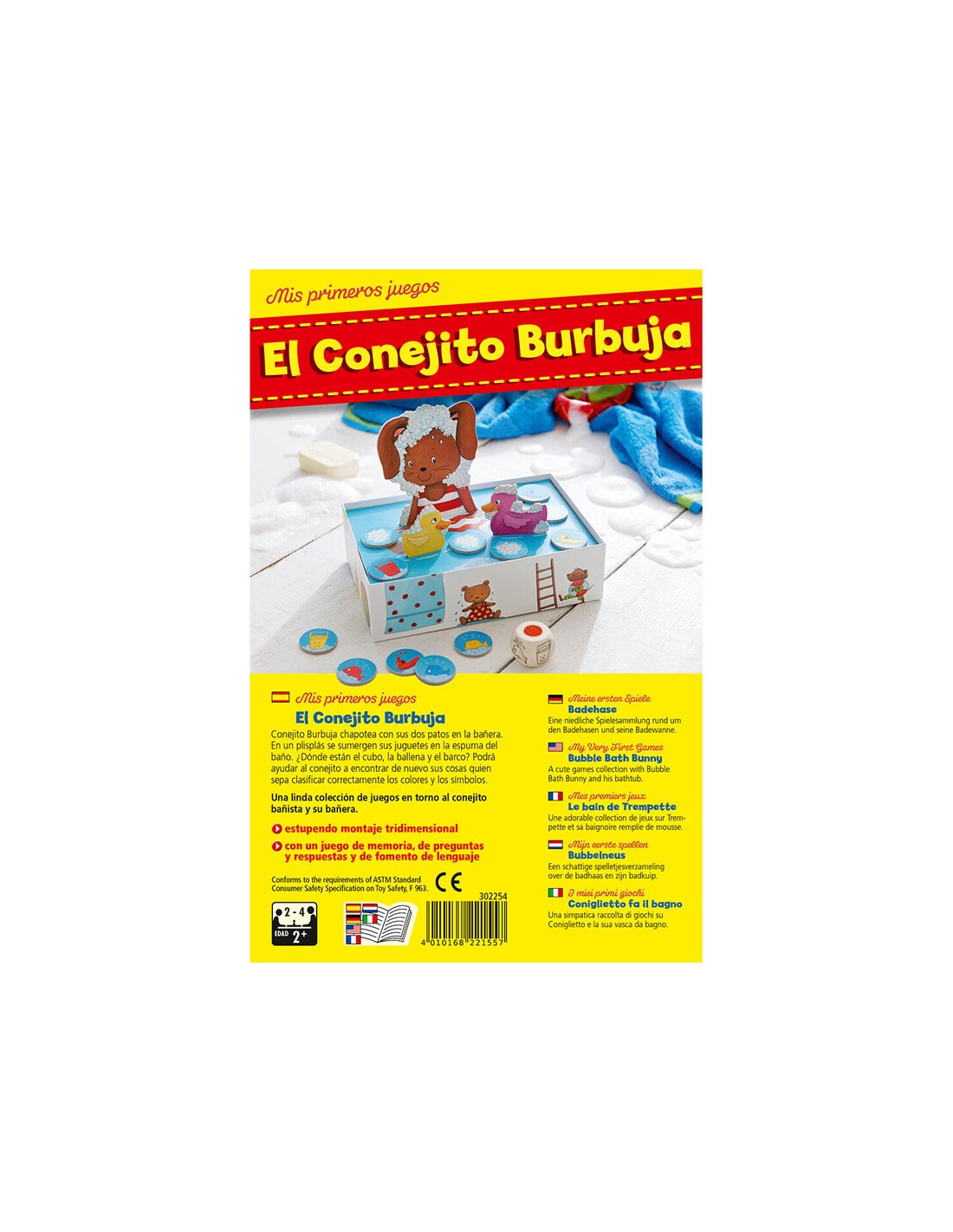 El Conejito Burbujas es un juego de memoria que hará las delicias de los peques a partir de 2 años. Se trata de un sencillo y bonito juego en el que los jugadores deberemos encontrar lo que se esconde en la bañera del Conejito Burbuja. Un juego que ayudará a aprender los colores, el lenguaje, la destreza y las habildades corporales.
