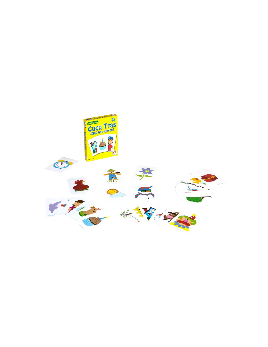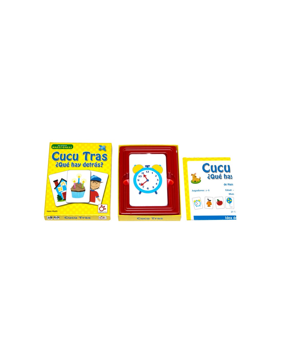 Cucu Tras ¿qué hay detrás? es un original y divertio juego familiar en la que uno de los jugadores le da la vuelta a una de las cartas, mientras los demás no miran. El resto de jugadores deben encontrar qué objeto es el que ha cambiado.