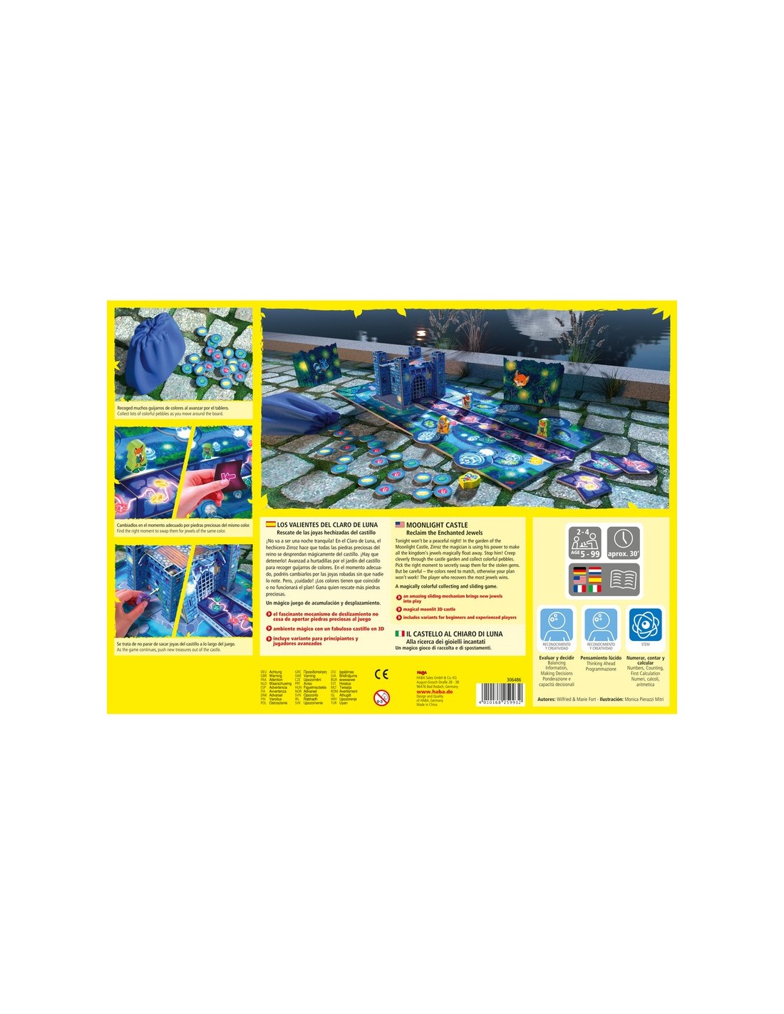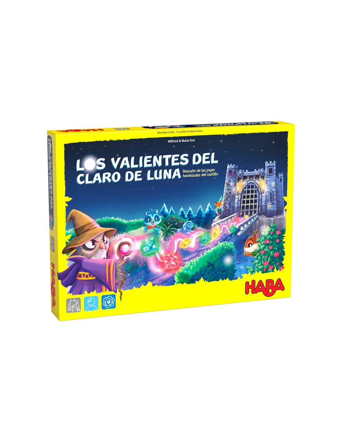 Los Valientes del Claro de Luna es un juego de mesa para niños de Haba donde estos deberán de detener al hechicero avanzando a hurtadillas por el jardín del castillo recogiendo guijarros de colores.